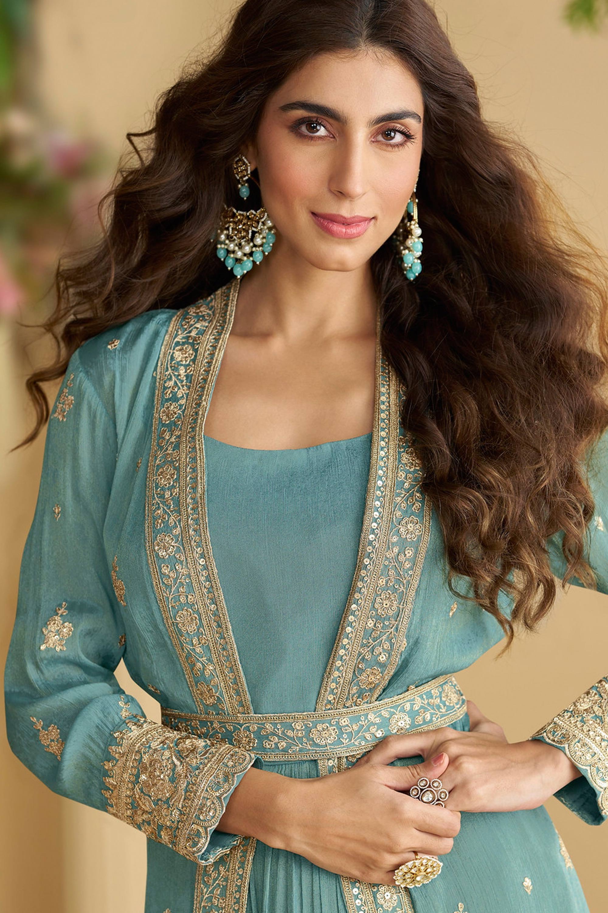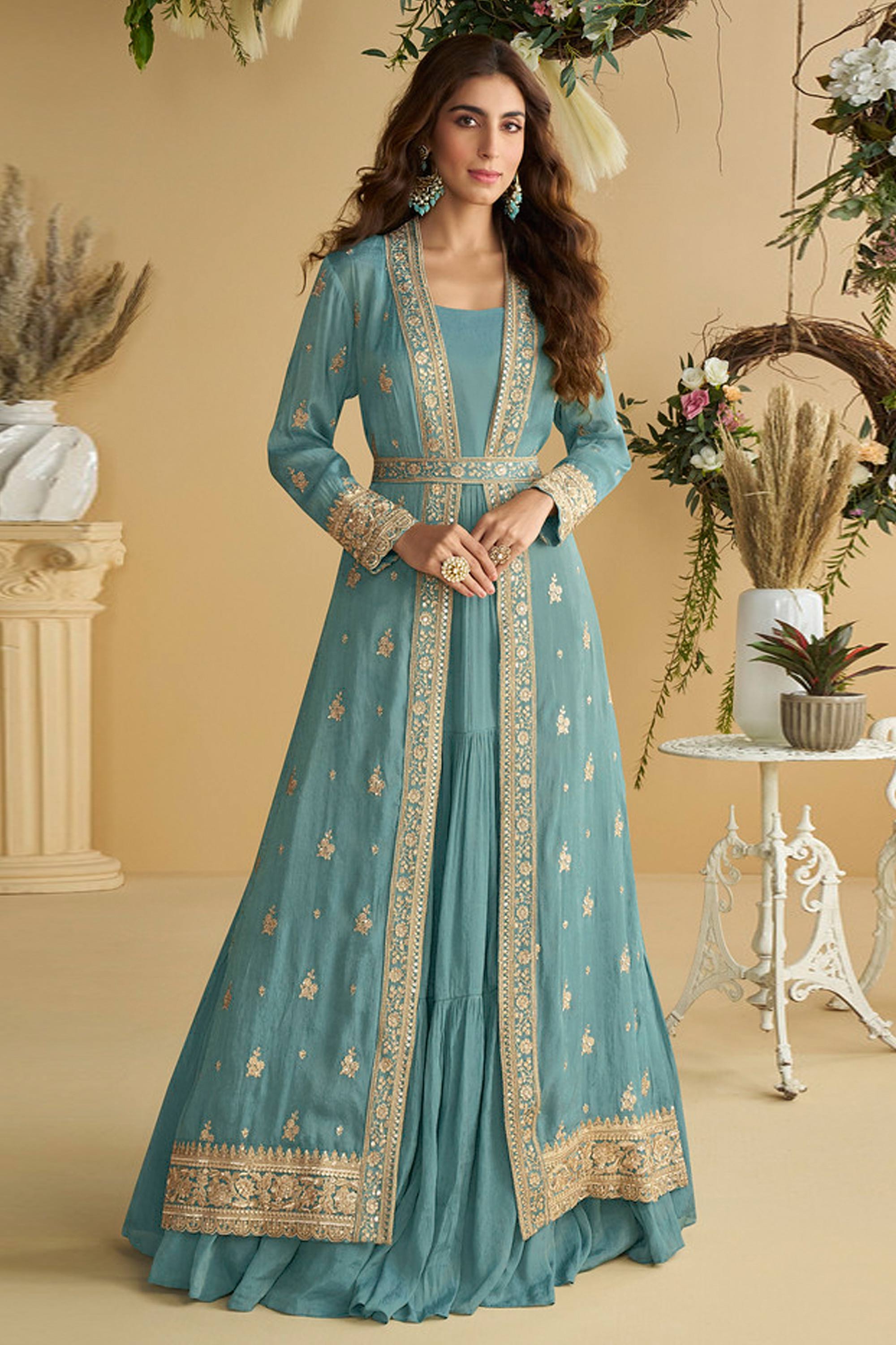 Turn heads with this stunning shrug-style gown, perfect for formal events or celebrations. This elegant ready-to-wear design combines comfort with sophistication. The intricate embroidered details add a luxurious touch, enhancing its visual appeal. Designed to flatter various body types, the flowing silhouette ensures ease of movement while maintaining a stylish look. Made from high-quality fabric, it is soft, durable, and perfect for extended wear. Pair this gown with your favorite accessories for a complete outfit that exudes charm and confidence.