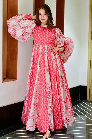 Hand-printed pieces are crafted with traditional techniques, which may result in slight imperfections—these add to their uniqueness and artisanal charm. Due to the natural dyeing and printing process, slight color bleeding may occur during the first wash. As these designs are not machine-printed, their raw, handcrafted essence enhances the beauty of your chosen outfit.