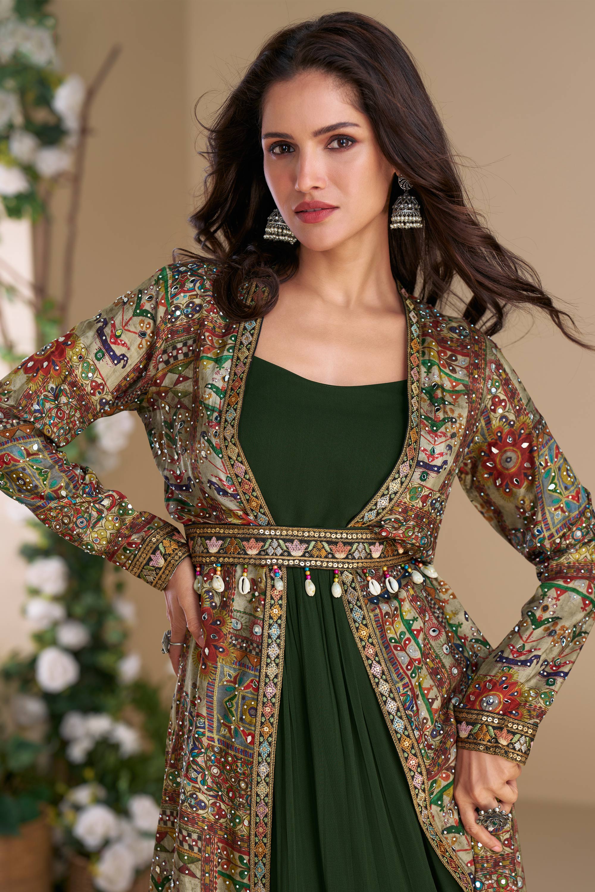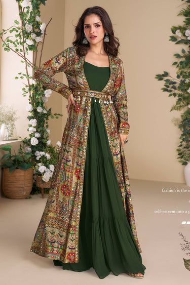Embrace contemporary style with the Designer New Look Printed Gown With Shrug. This trendy outfit is perfect for anyone seeking a polished yet casual appearance. The gown's striking print is enhanced by a comfortable shrug that pairs seamlessly with its design. Ideal for brunch dates, weekend outings, or celebrations, this piece transitions beautifully from day to evening wear. The premium fabric ensures all-day comfort and an exceptional fit, giving you a stylish and relaxed feel. Add this versatile look to your collection today!