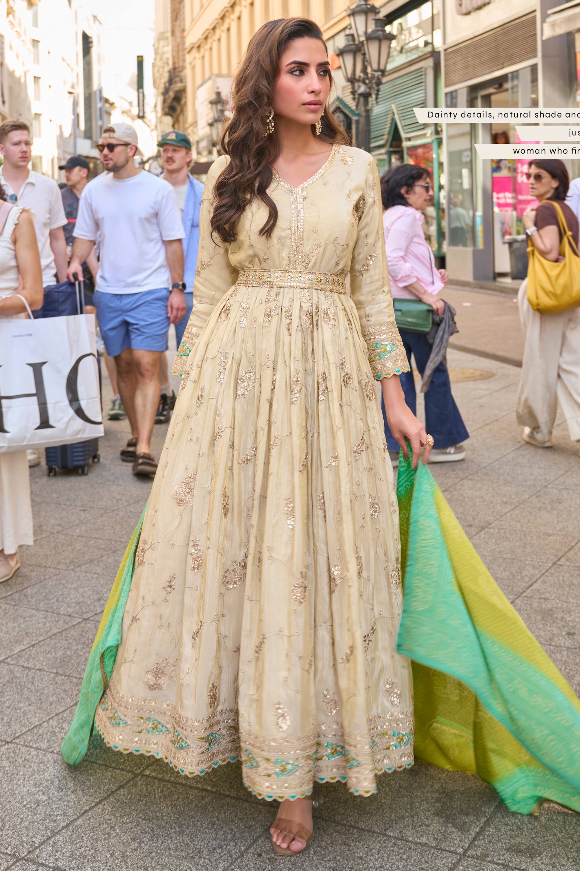 Look effortlessly chic in this Beige Art Silk Anarkali Gown featuring intricate embroidery details. Perfect for formal functions and celebrations, the gown provides a perfect mix of comfort and elegance. Its rich art silk fabric drapes beautifully while ensuring easy movement throughout the day. Paired with a lightweight, matching dupatta, it creates a refined ensemble ready for any festive occasion. Whether you’re attending a wedding or a family gathering, this readymade gown is an excellent choice for adding a touch of charm to your wardrobe.