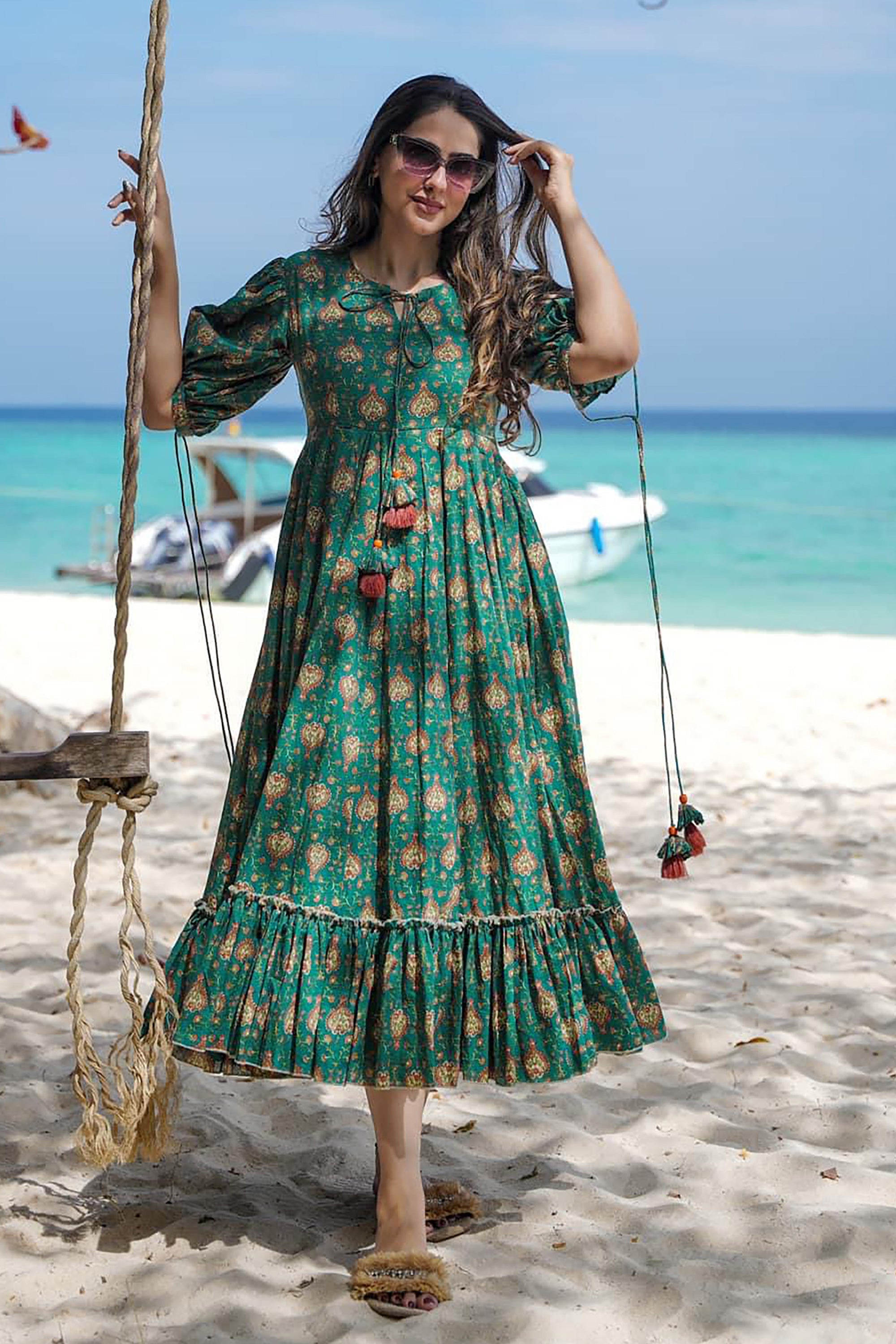 Hand-printed pieces are crafted with traditional techniques, which may result in slight imperfections—these add to their uniqueness and artisanal charm. Due to the natural dyeing and printing process, slight color bleeding may occur during the first wash. As these designs are not machine-printed, their raw, handcrafted essence enhances the beauty of your chosen outfit.