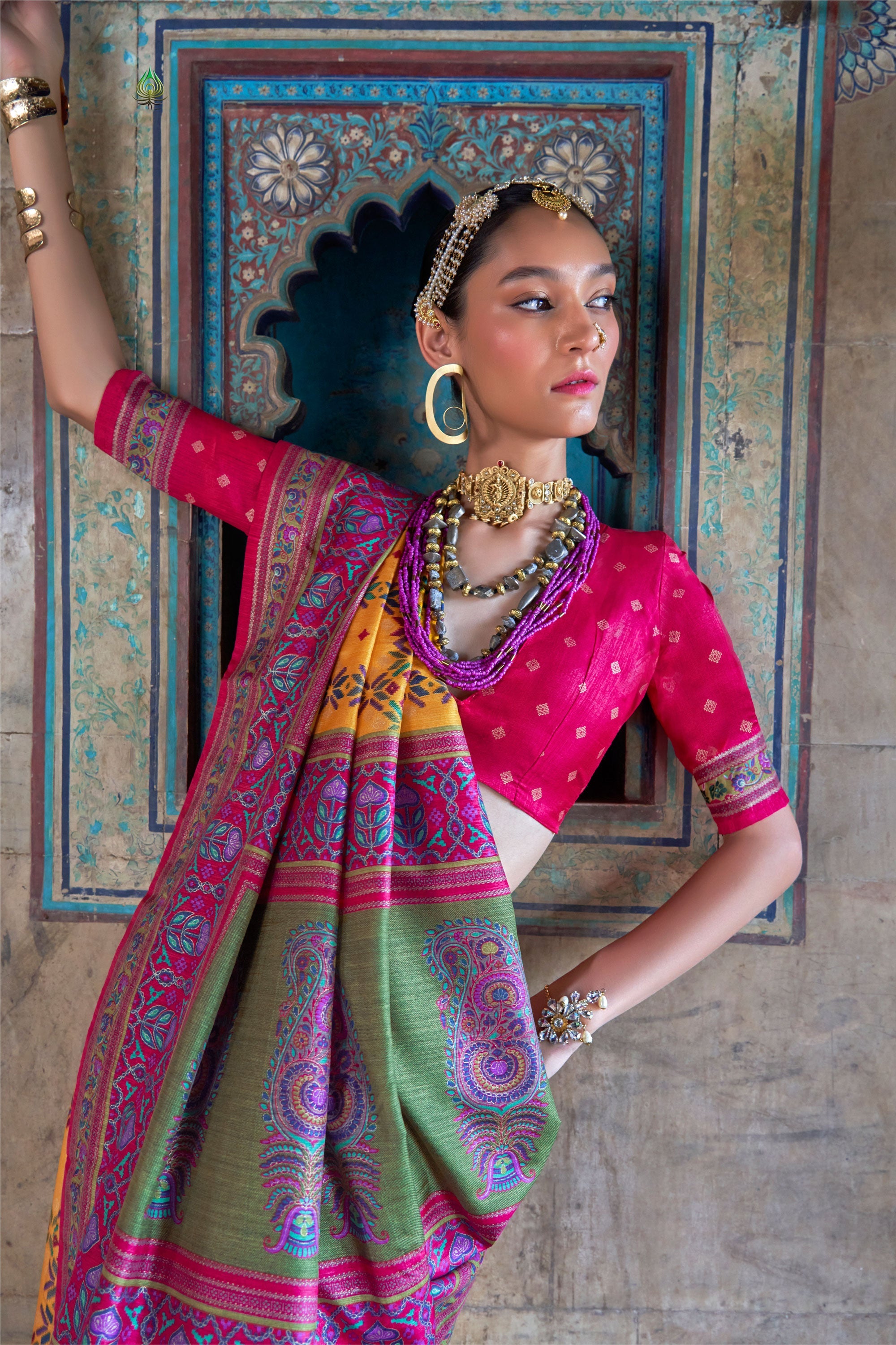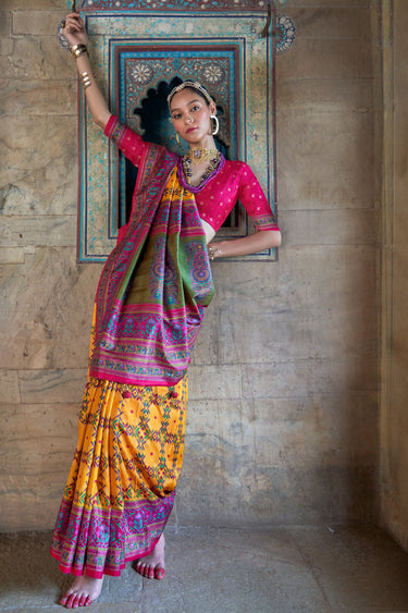 Amazing Yellow Color Art Silk Fabric Patola Printed Saree