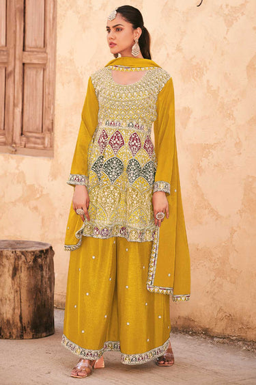 Chinon Fabric Yellow Color Attractive Readymade Palazzo Suit
