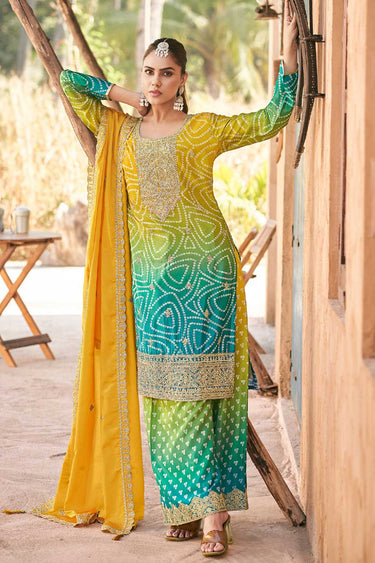Chinon Fabric Yellow Color Glamorous Embroidered Palazzo Suit