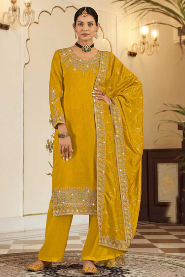 Vichitra Fabric Yellow Color Trendy Pakistani Replica Suit