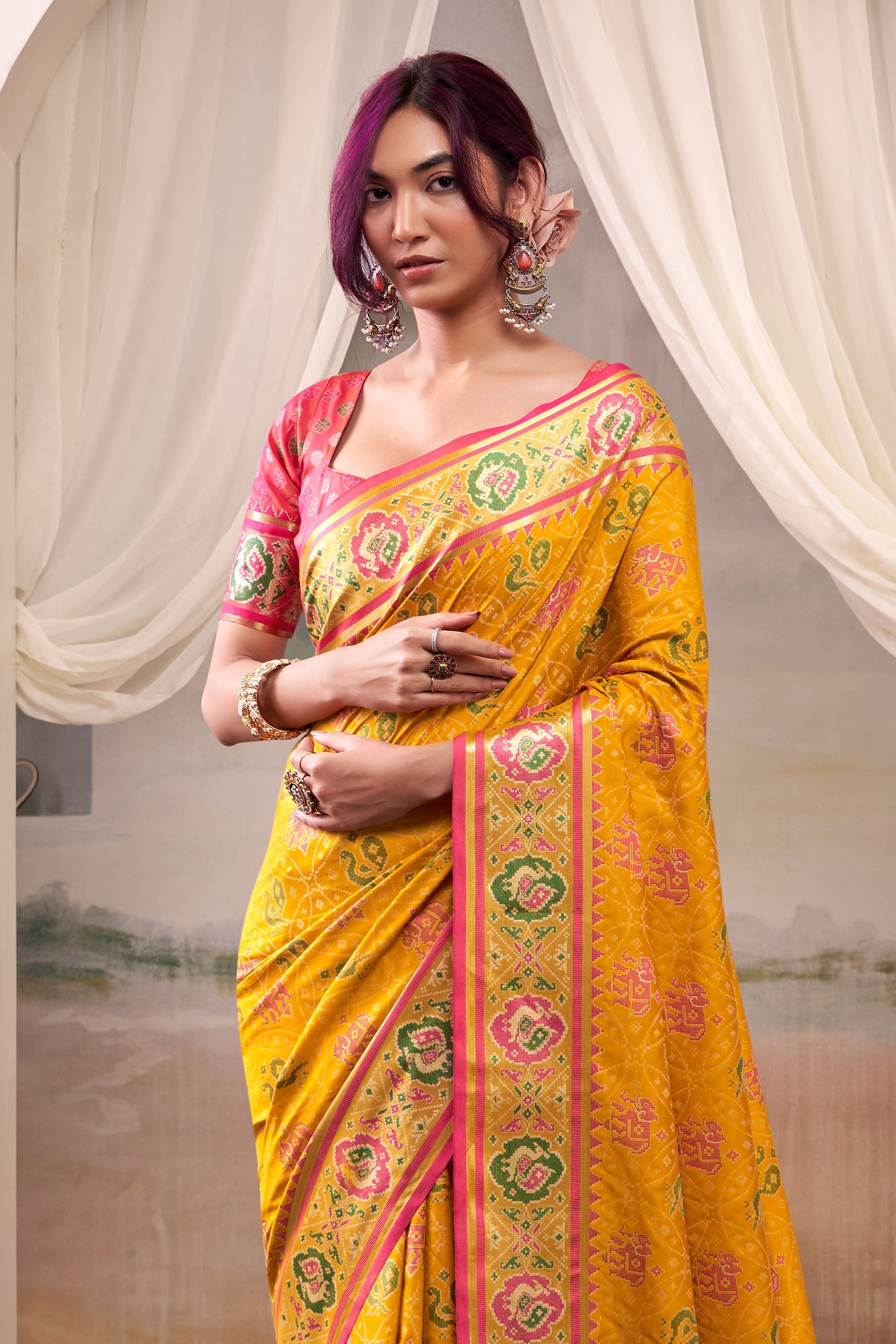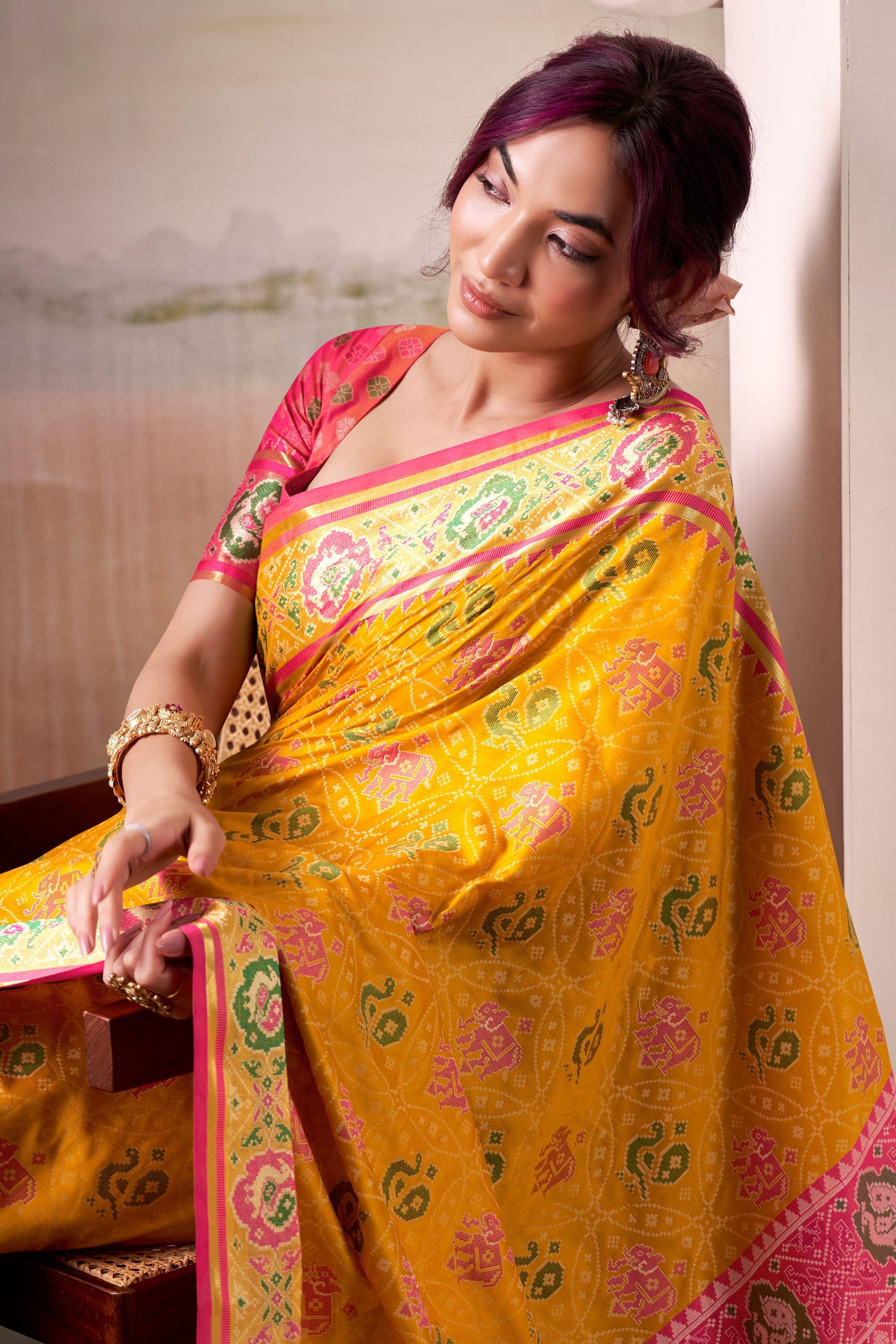 Yellow Color Festive Wear Glamorous Look Patola Silk Saree