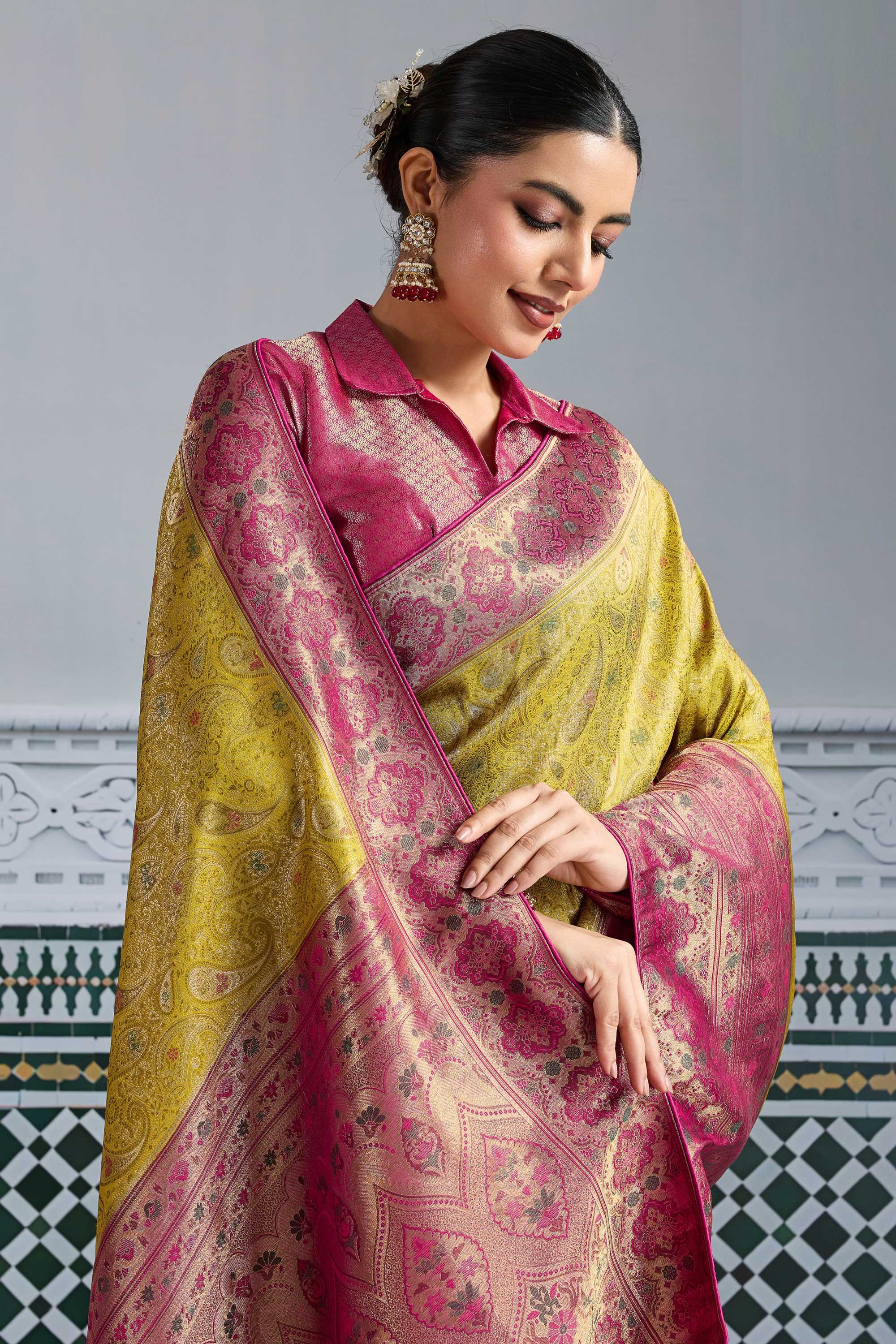 Make a stunning statement at your next event with this Weaving Work Traditional Kanjivaram Silk Saree. Renowned for its delicate craftsmanship and smooth silk fabric, this saree captures the beauty of tradition with its detailed weaving. Ideal for festive gatherings, cultural events, or family functions, this saree offers a flawless blend of grace and style. The lightweight silk material ensures comfort while radiating a luxurious aura. Gift it for a special occasion or add it to your personal collection for an effortlessly regal touch.