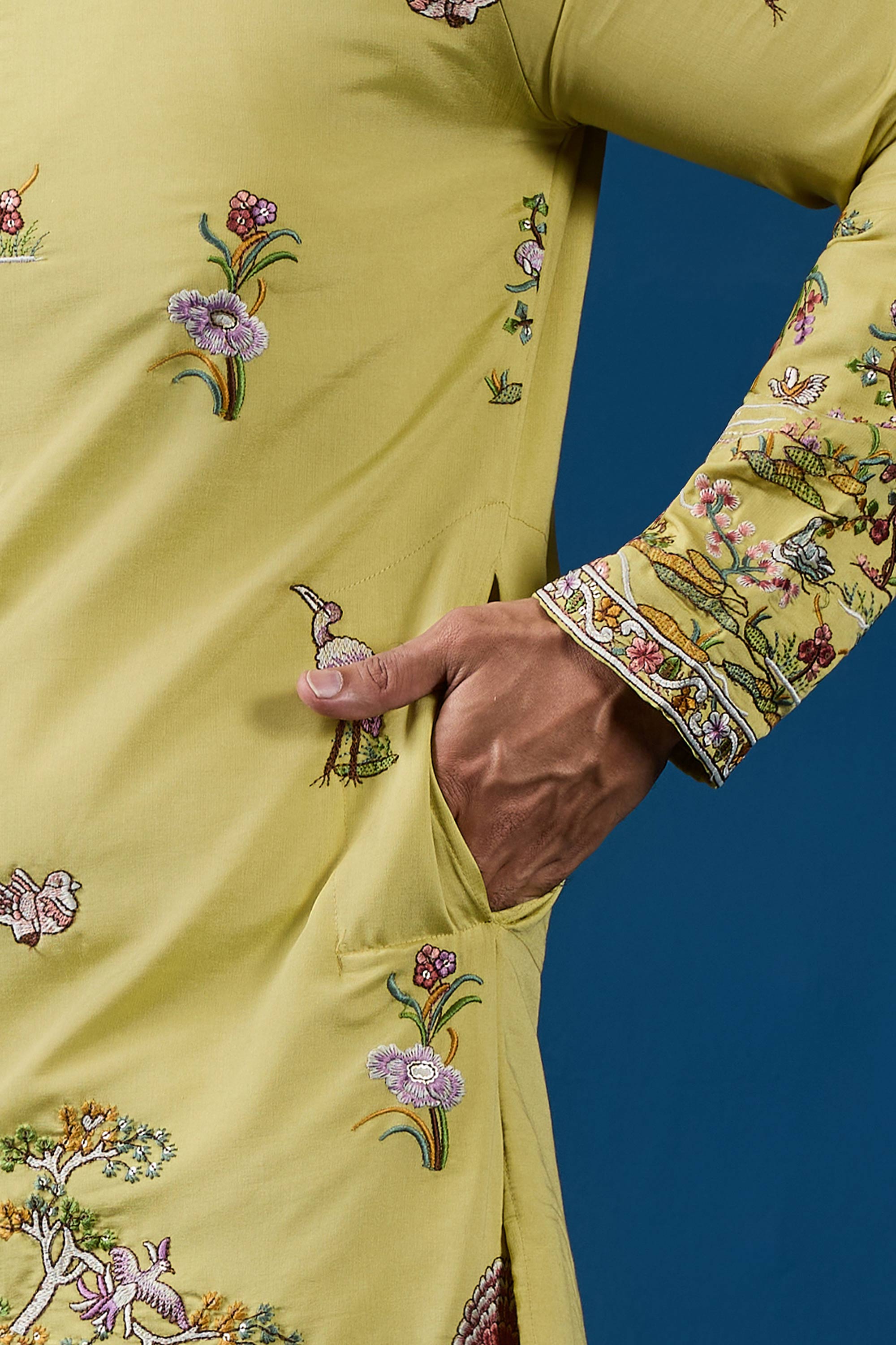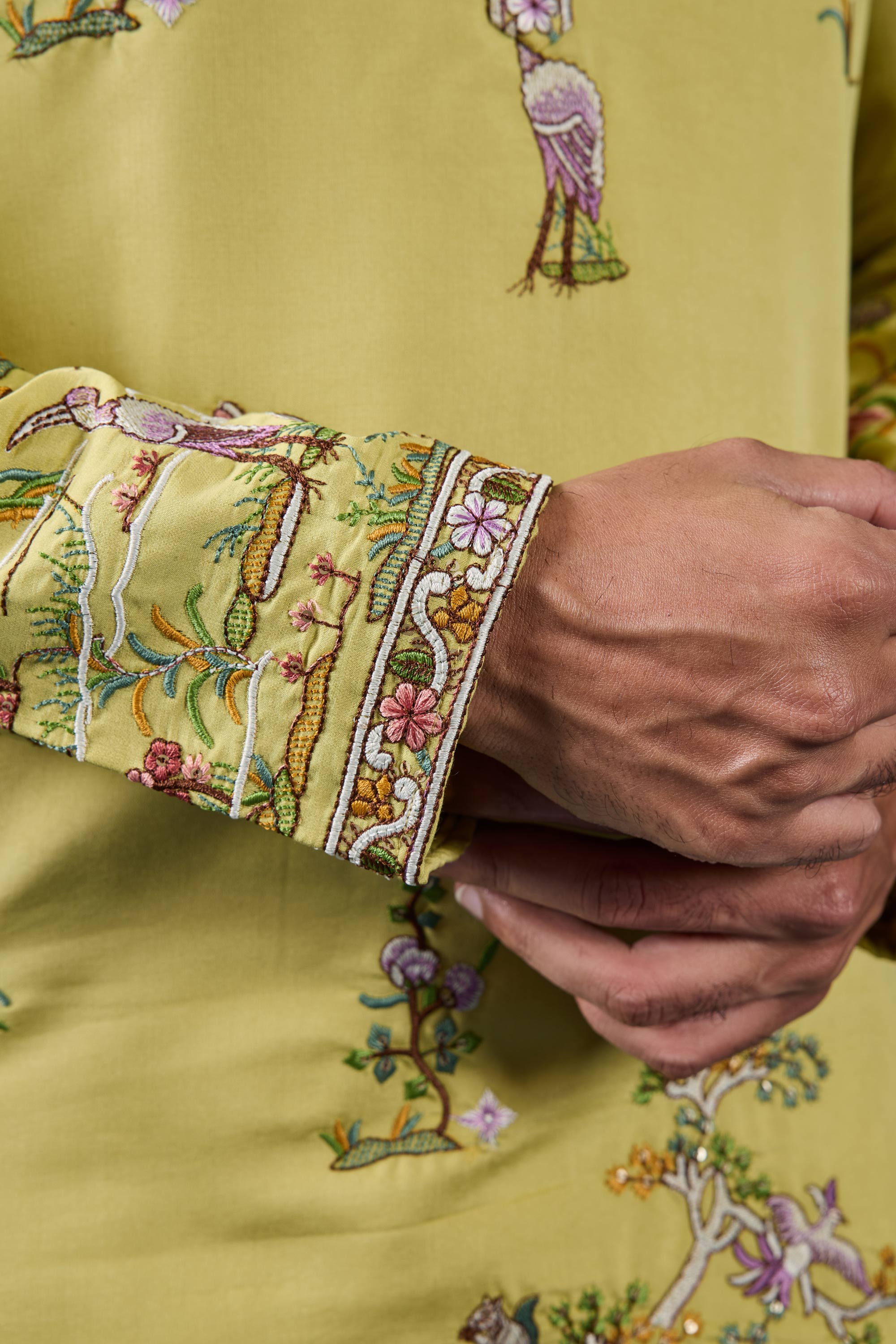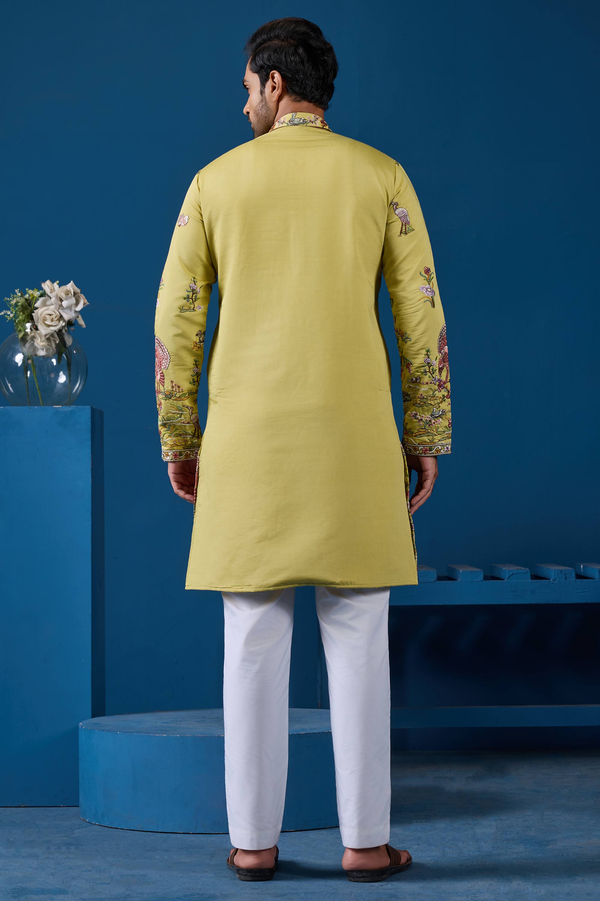 Yellow Viscose Silk Graceful Readymade Men Kurta For Sangeet Wear
