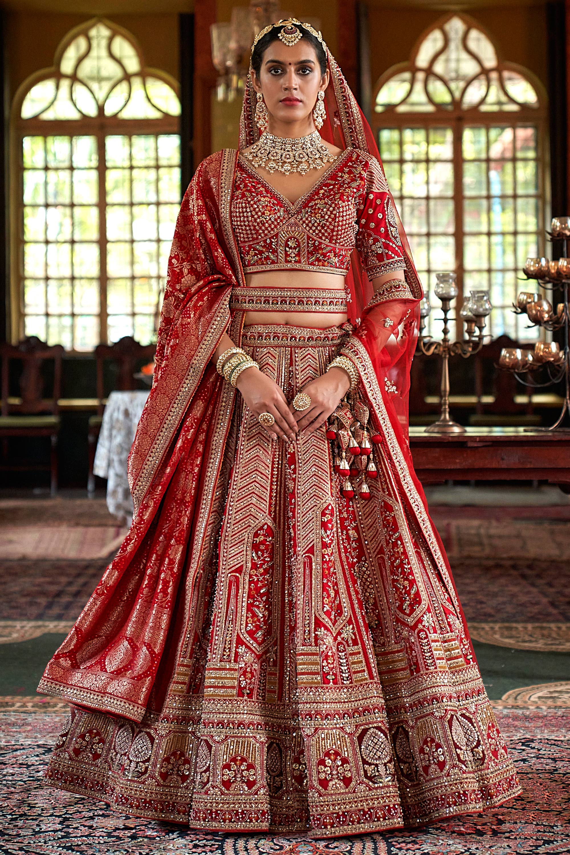 Heavy Embroidered Red Bridal Look Designer Lehenga Choli