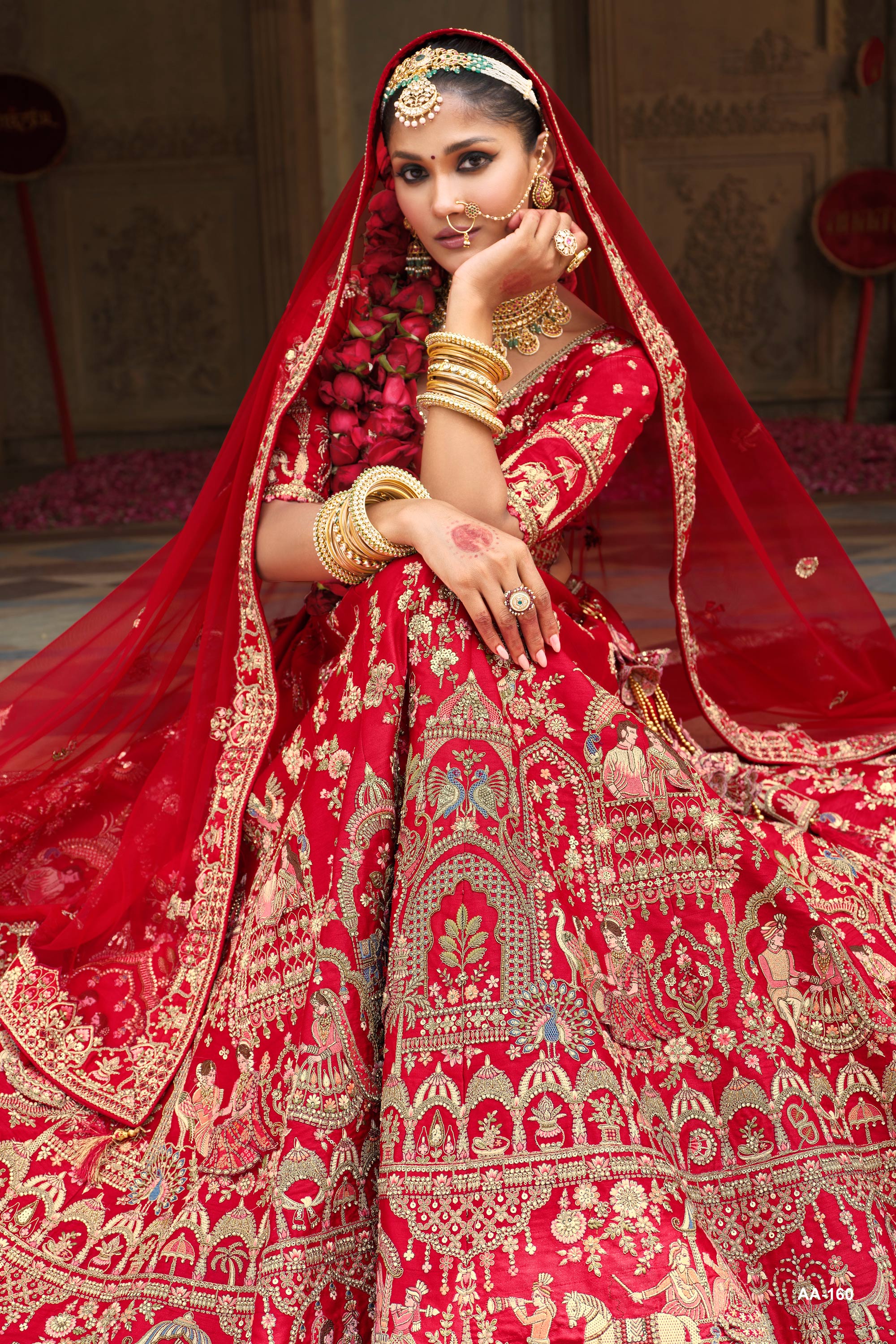 Stunning Red Heavy Embroidered Bridal Lehenga Choli