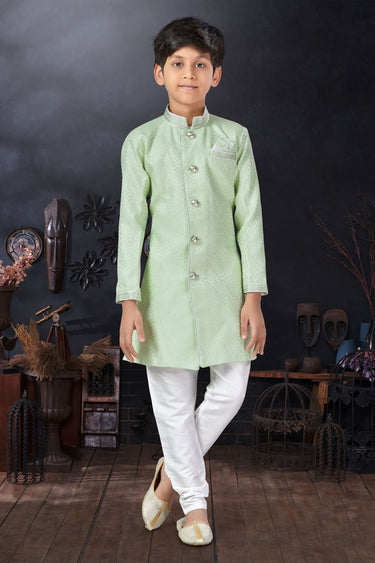 Occasion Wear Readymade Indo Western For Boys In Sea Green Color