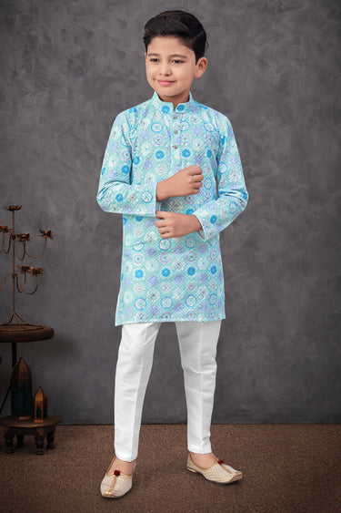 Dress your son in timeless elegance with this Traditional Wear Fancy Readymade Kurta Pyjama for Boys. This set is made from high-quality material that offers comfort and durability. The kurta comes with exquisite embroidery and a classic design, while the pyjama is tailored for a relaxed yet stylish look. Perfect for Diwali, Eid, weddings, and other special occasions, this attire ensures that your child is both comfortable and fashionable. Available in multiple sizes and color options, it's easy to find the perfect fit for your boy.