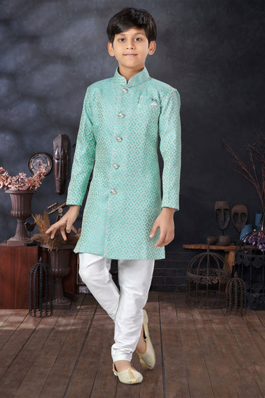 Sea Green Color Occasion Wear Readymade Boys Indo Western