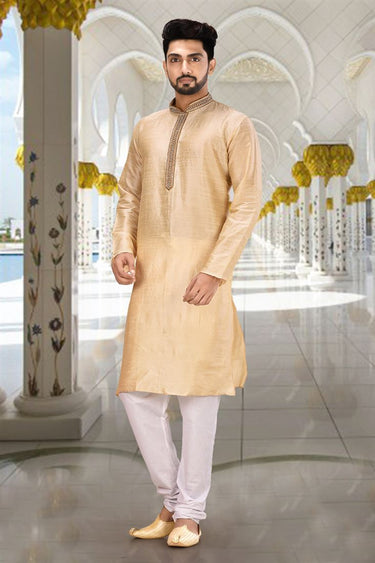 Beautiful Beige Wedding Wear Readymade Kurta Pyjama For Men In Art Silk Fabric