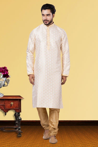 Beige Jacquard Silk Fabric Function Wear Readymade Kurta Pyjama For Men