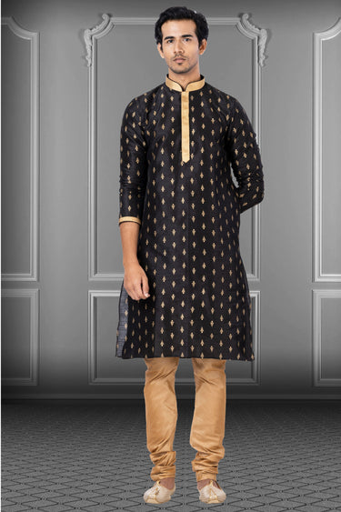 Black Dhupion Fabric Sangeet Wear Trendy Readymade Kurta Pyjama For Men