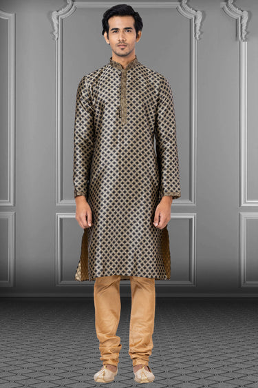 Black Jacquard Fabric Sangeet Wear Readymade Kurta Pyjama For Men