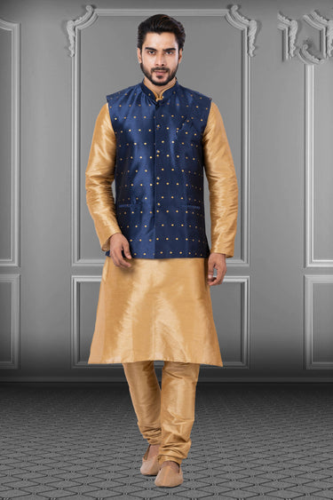 Dhupion Raw Silk Cream Wedding Wear Readymade Designer Men Kurta Pyjama With Modi Jacket