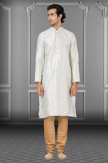 Light Cyan Function Wear Linen Silk Readymade Men Kurta Pyjama
