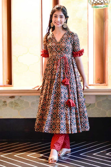 Hand-printed pieces are crafted with traditional techniques, which may result in slight imperfections—these add to their uniqueness and artisanal charm. Due to the natural dyeing and printing process, slight color bleeding may occur during the first wash. As these designs are not machine-printed, their raw, handcrafted essence enhances the beauty of your chosen outfit.