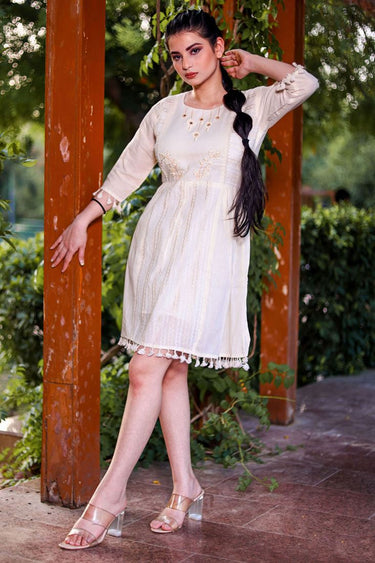 Radiant Off White Thread Hand Work Cotton Fabric Kurti