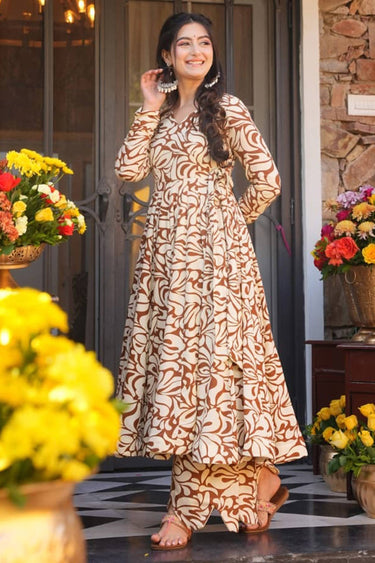 Women'S Floral Print Knee Length Fit And Flare A-Line Cotton Silk Dress
