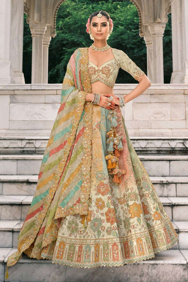 Art Silk Fabric Wedding Wear Wondrous Lehenga Choli In Beige Color