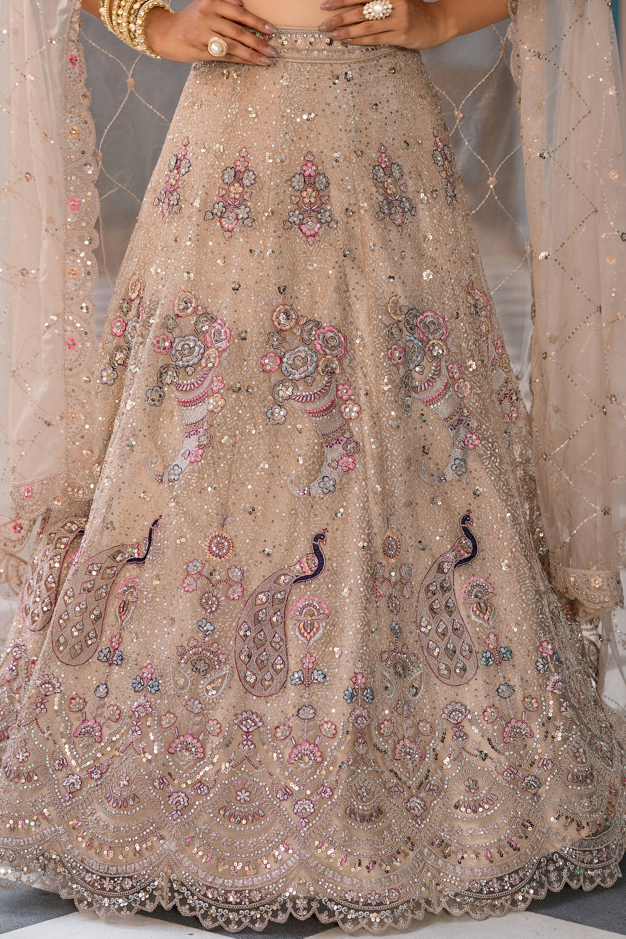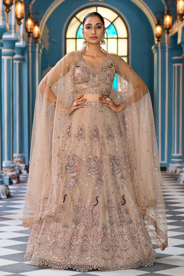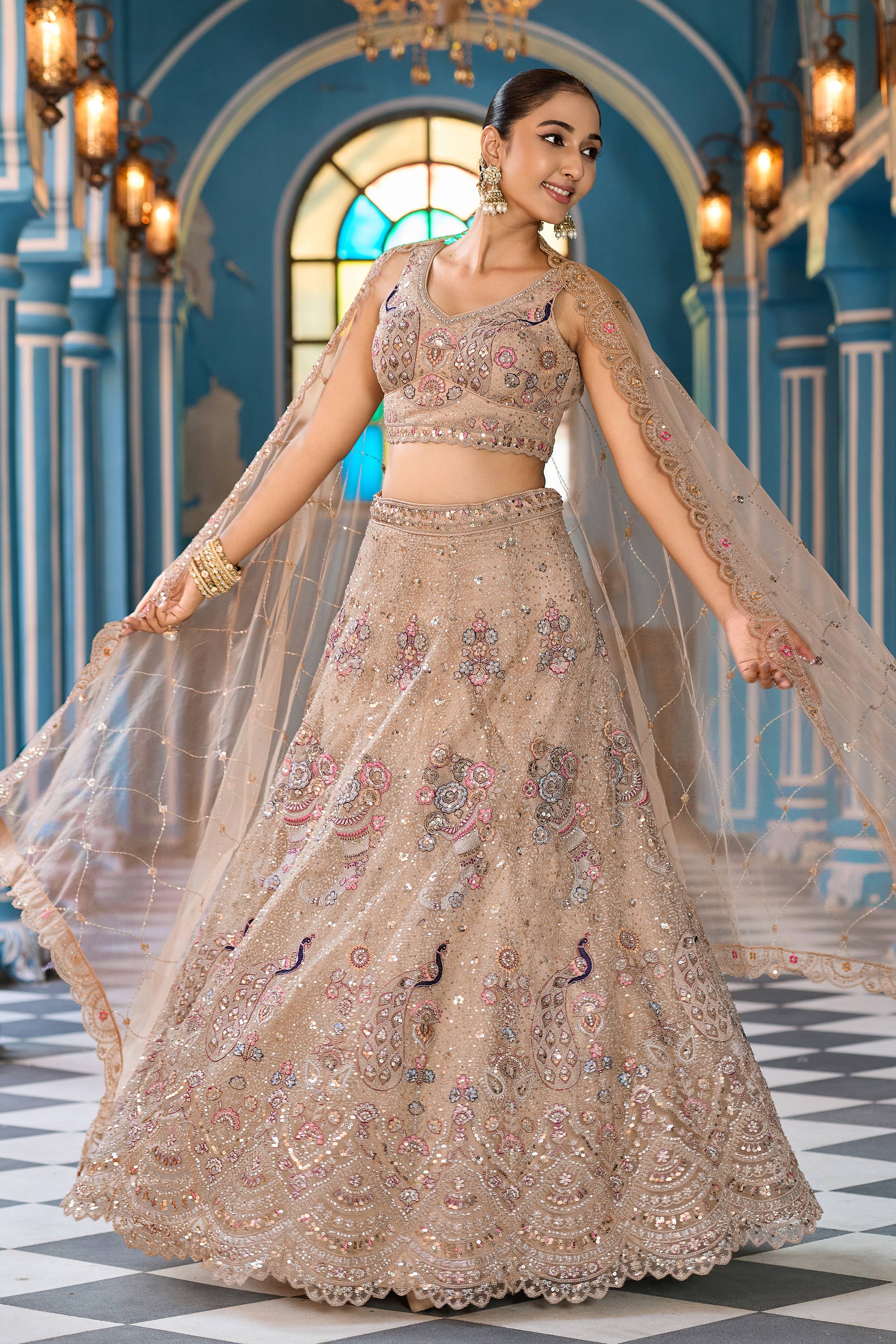 Cream Wedding Wear Net Fabric Embroidered Lehenga Choli