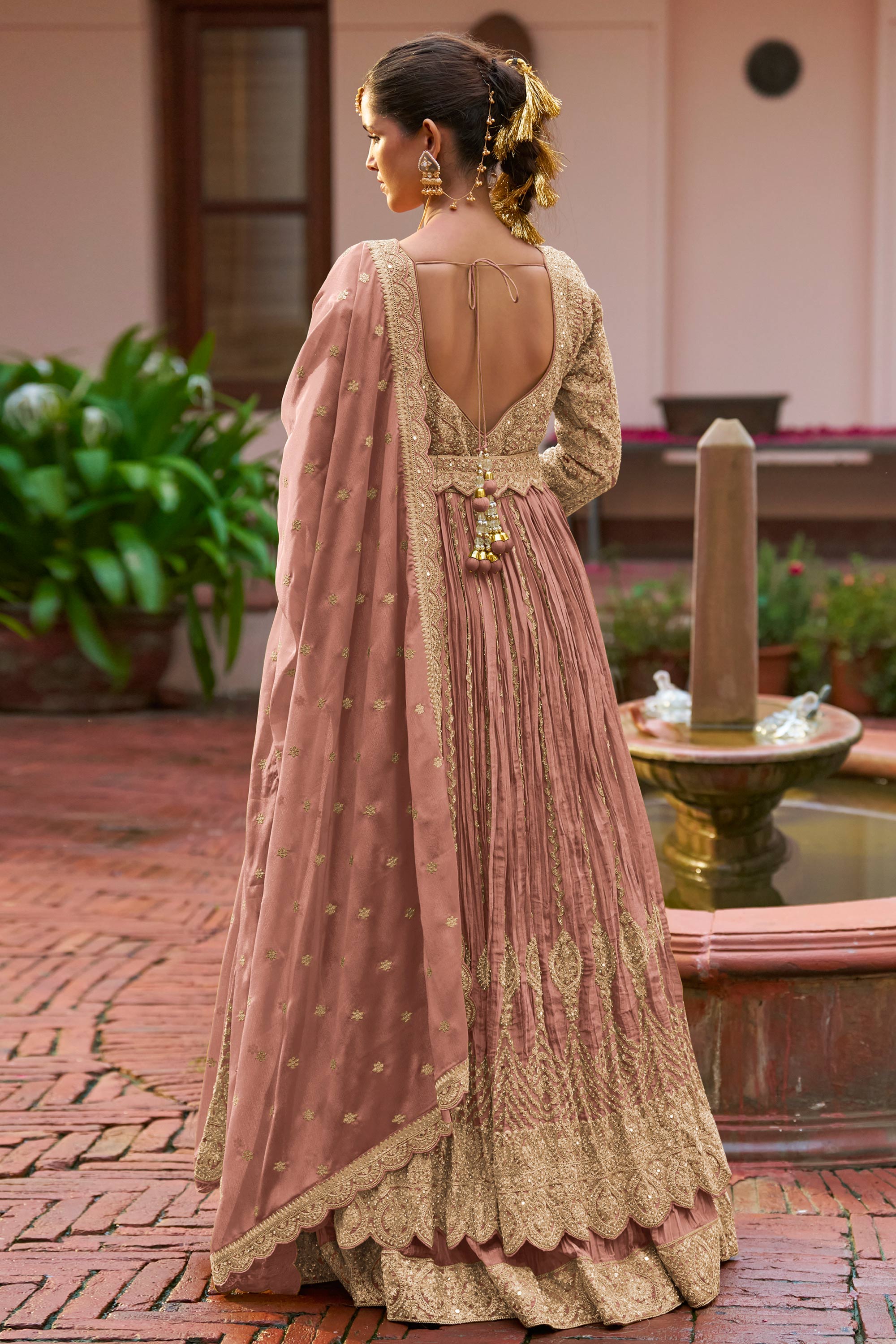 Embroidered Chinon Fabric Peach Readymade Lehenga Choli For Party Wear