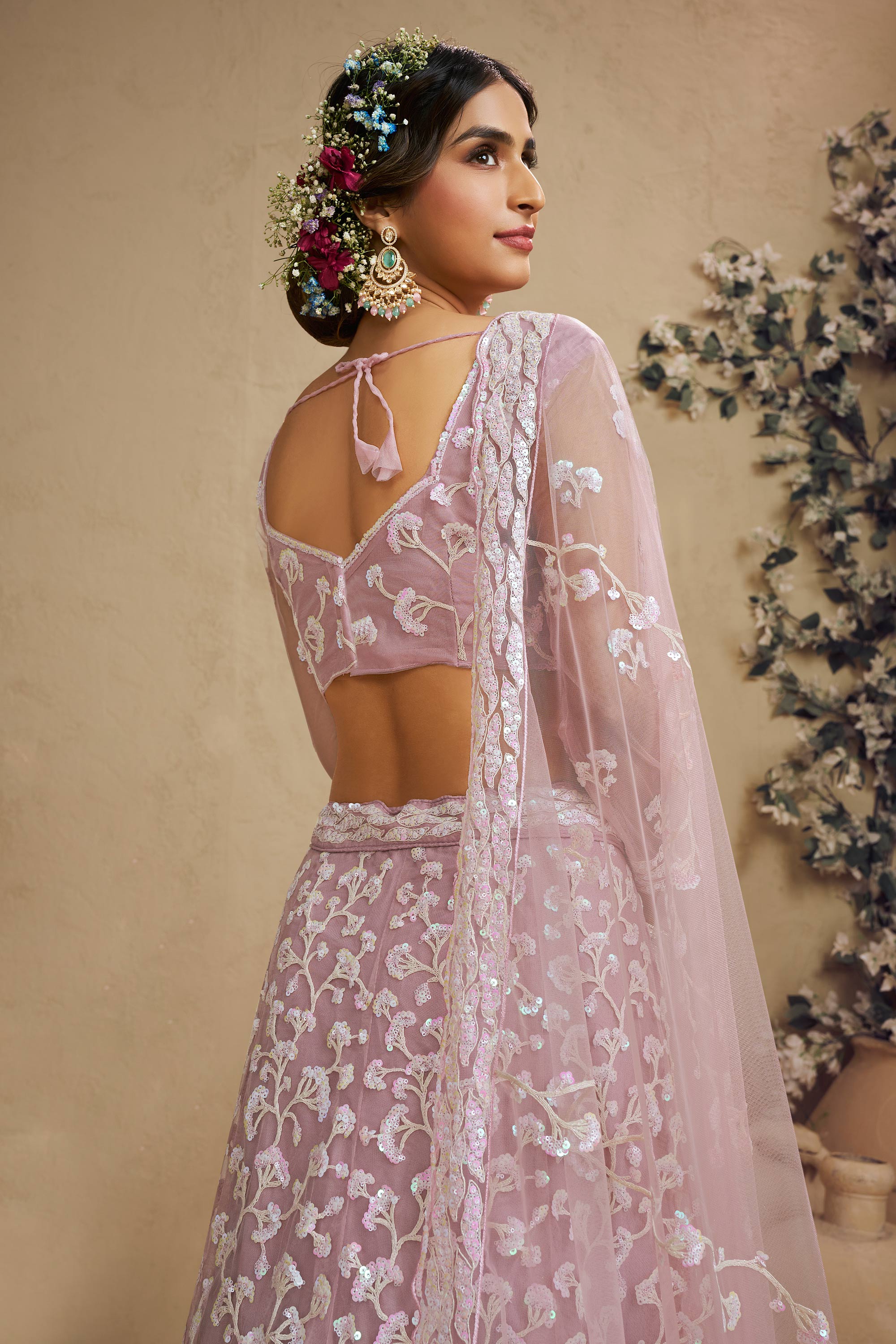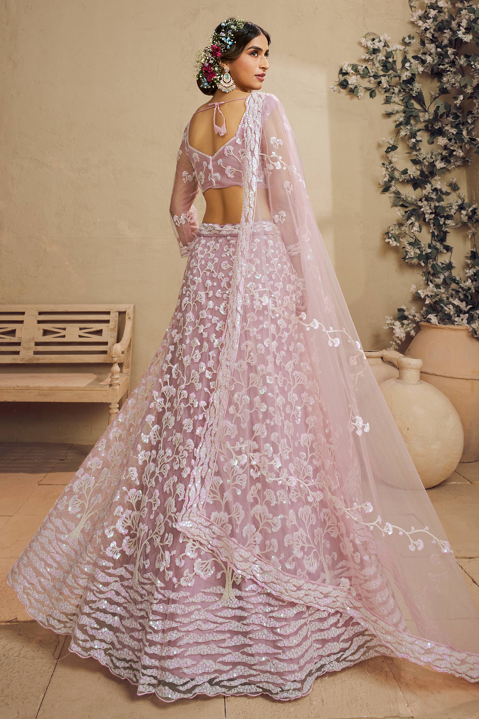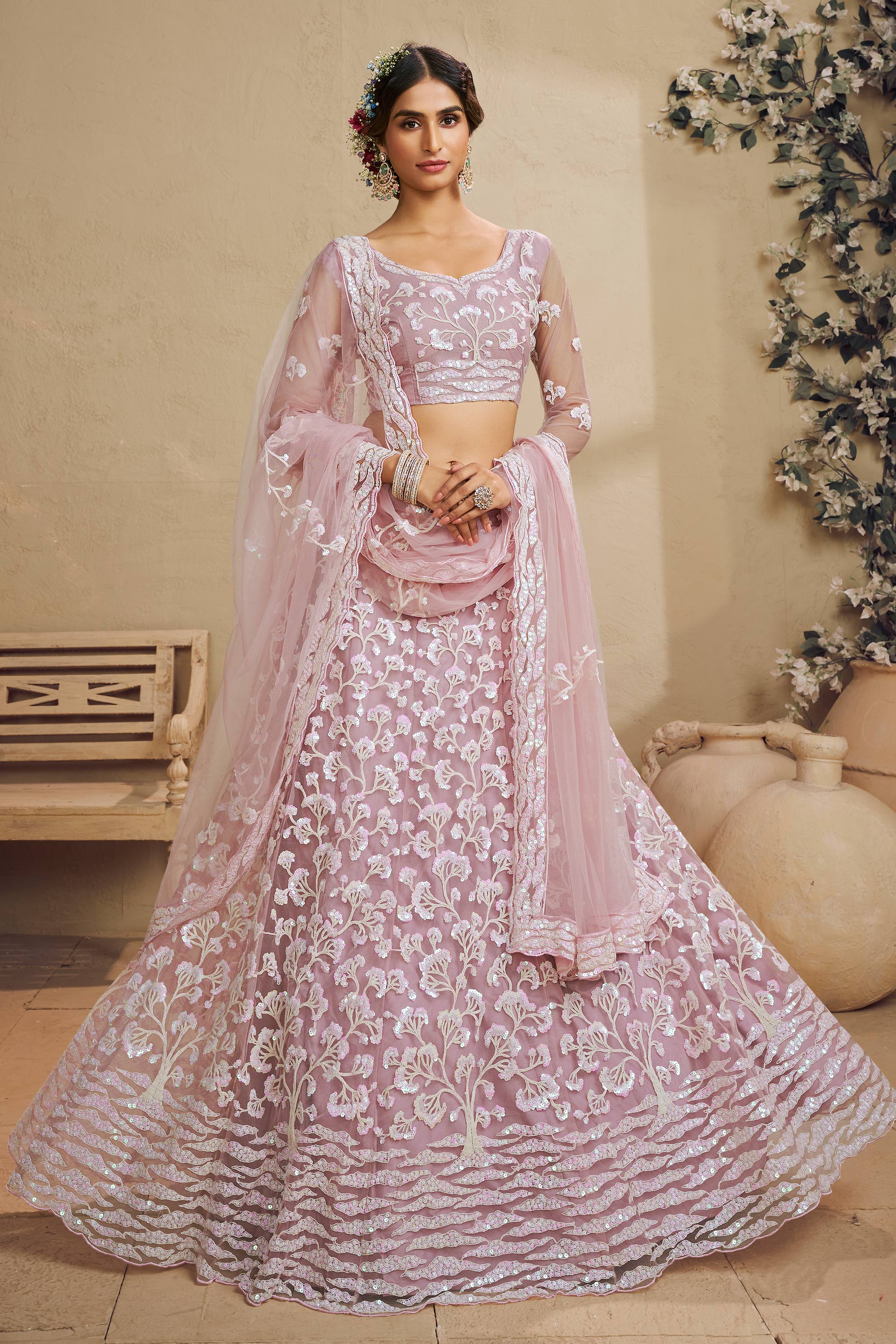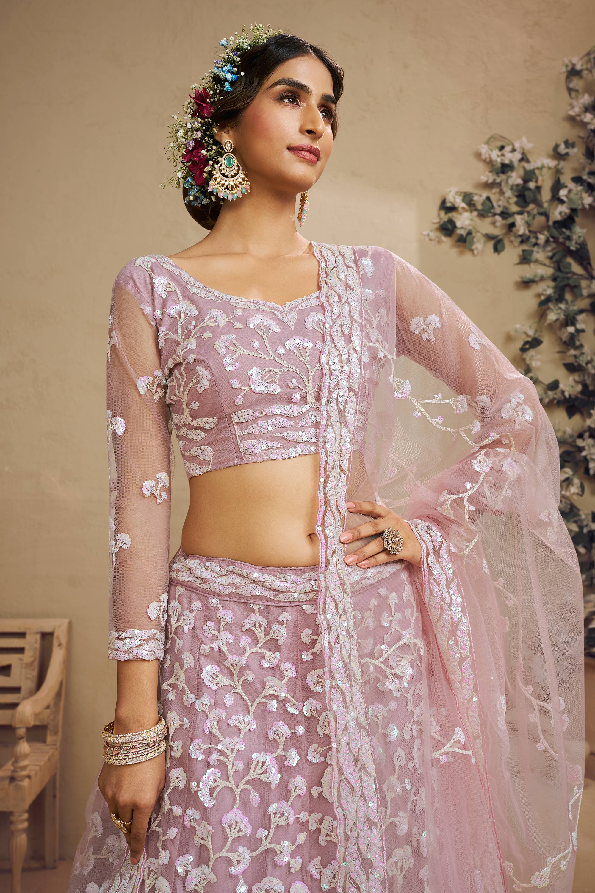 Gorgeous Pink Net Sequins Embroidered Wedding Function Designer Lehenga Choli