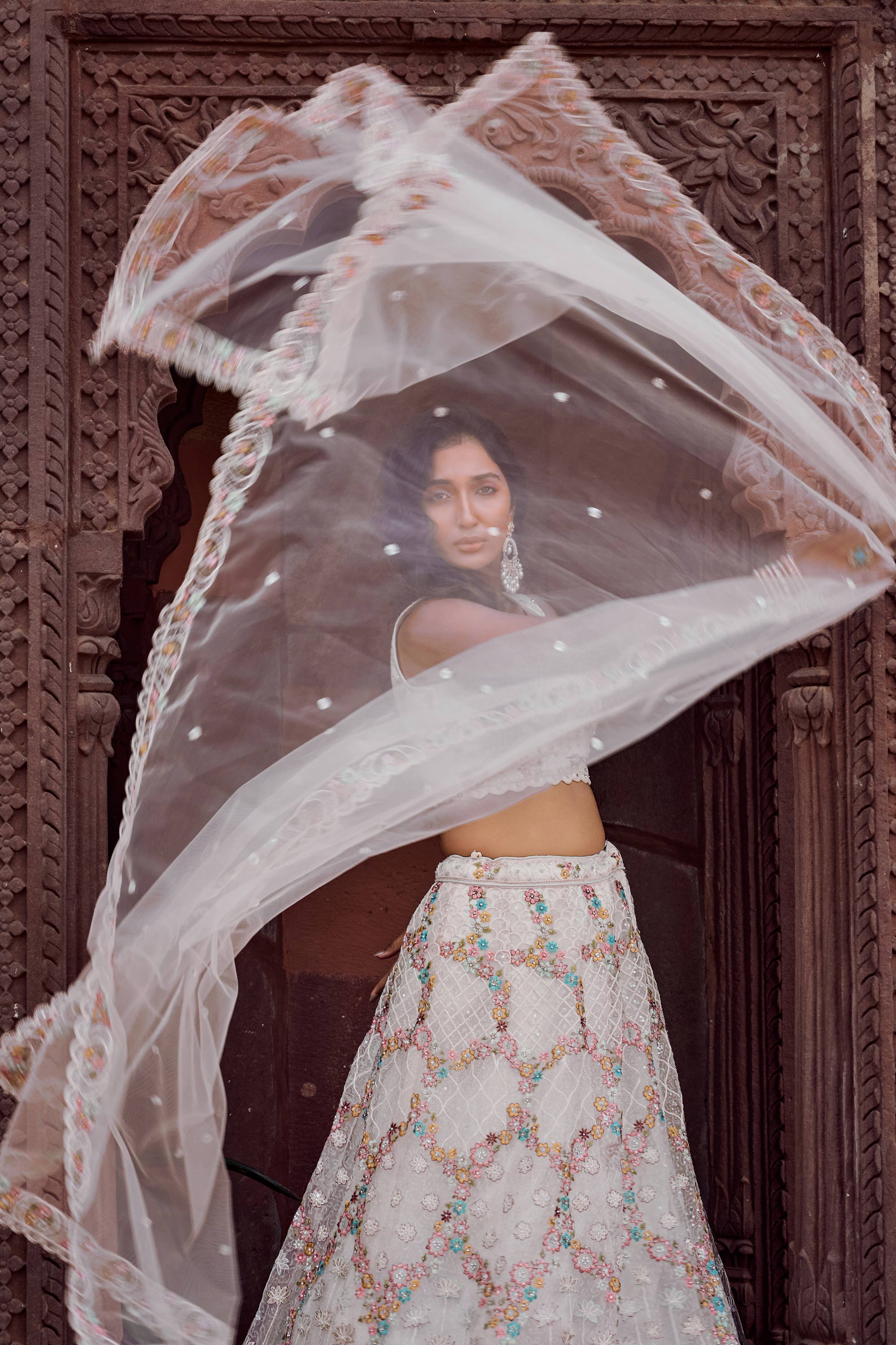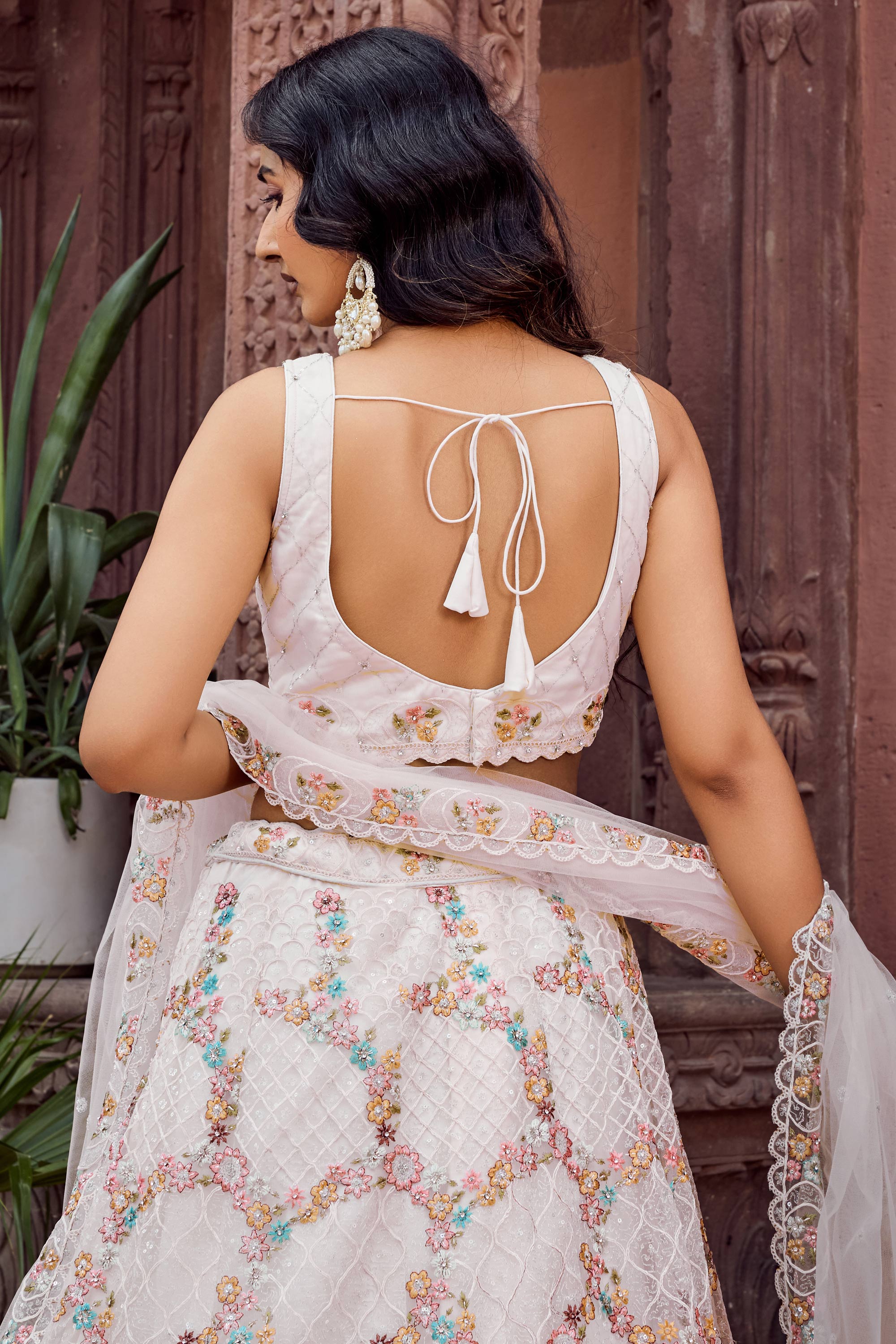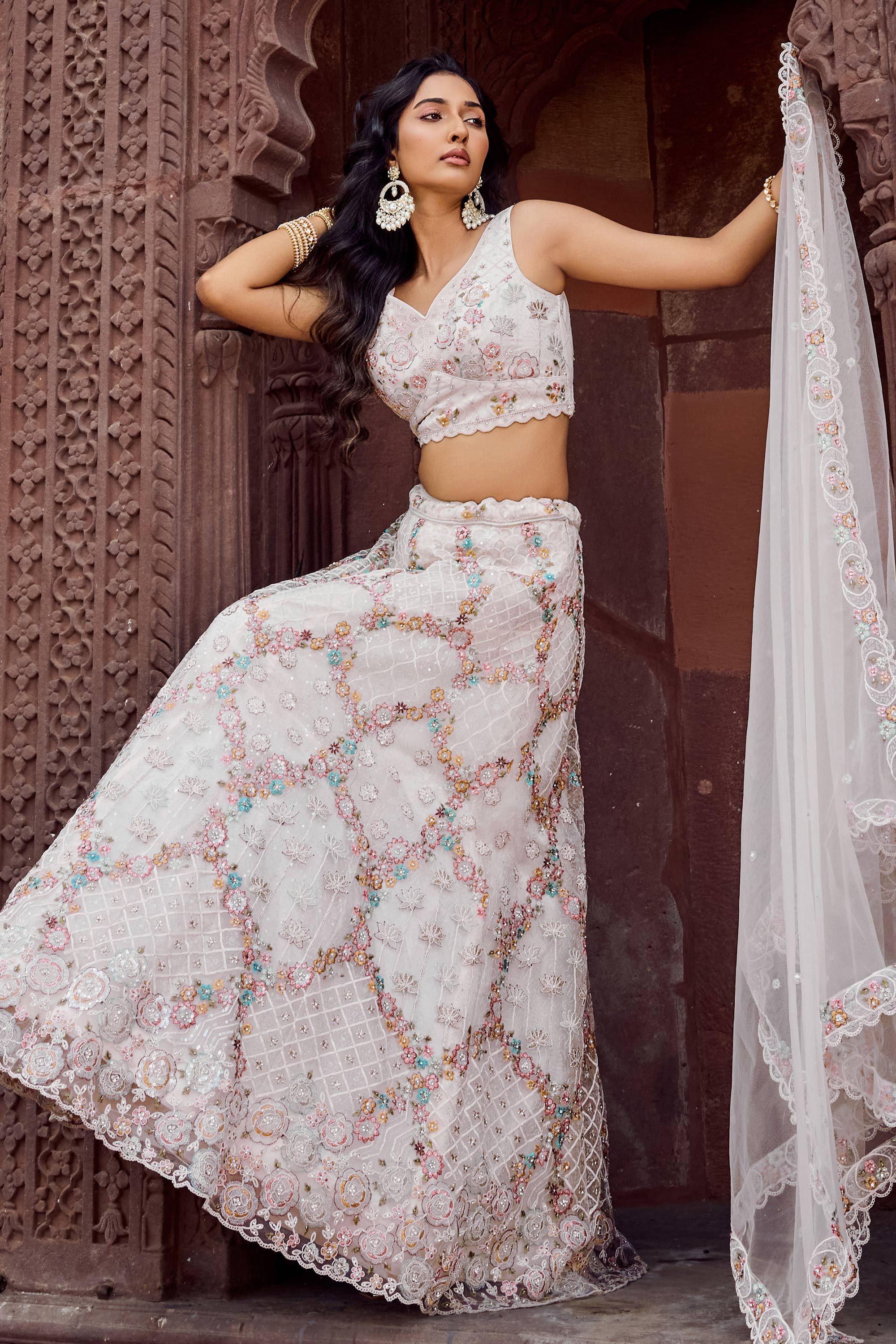 Off White Wedding Wear Embroidered Net Fabric Lehenga Choli