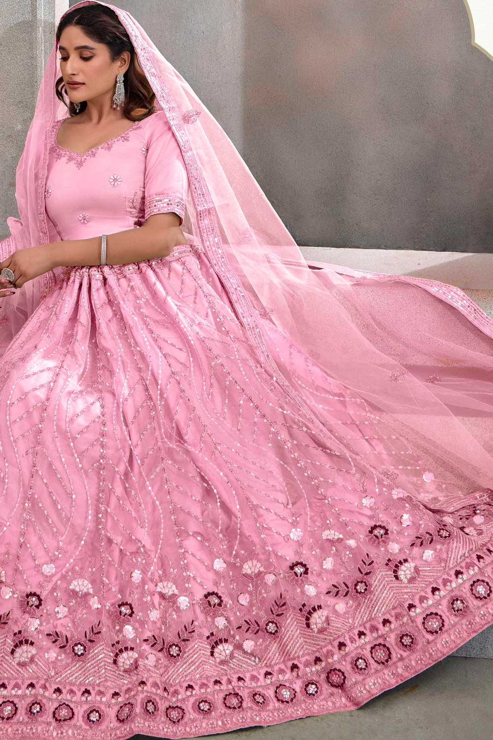 Phenomenal Function Style Pink Color Net Fabric Lehenga