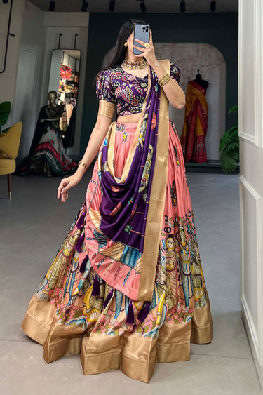 Peach Color Dola Silk Fabric Beatific kalamkari printed Lehenga