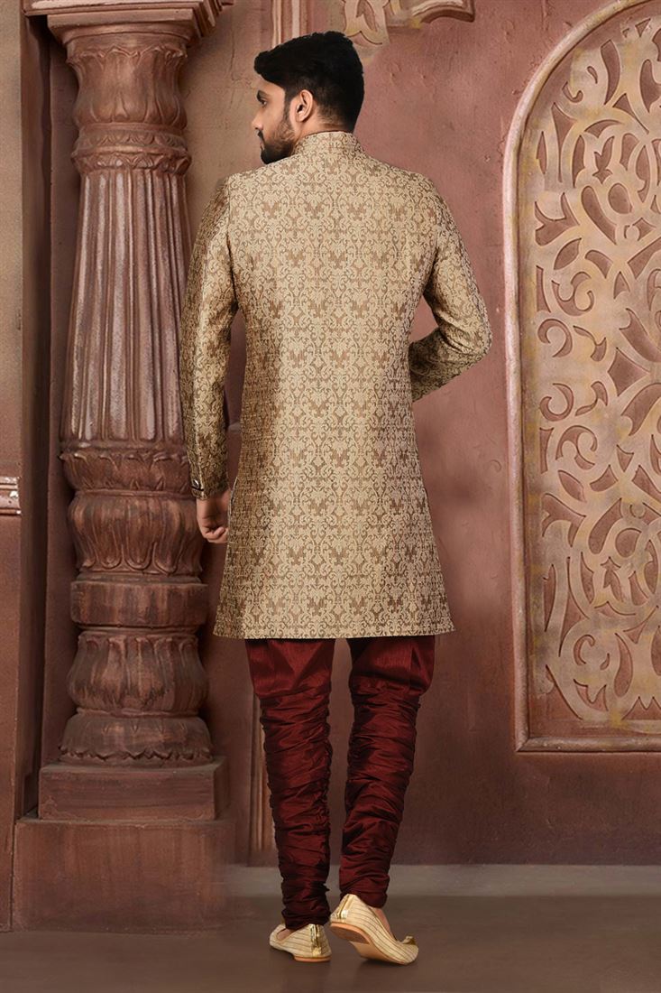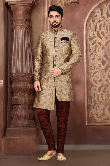 Beautiful Dark Beige Color Wedding Wear Readymade Indo Western For Men In Fancy Fabric