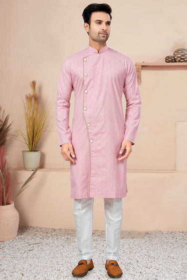 Pink Color Printed Cotton Fabric Fancy Readymade Indo Western For Men