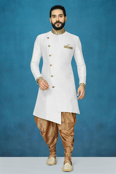 Art Silk Fabric Function Wear White Color Striking Dhoti Style Indo Western