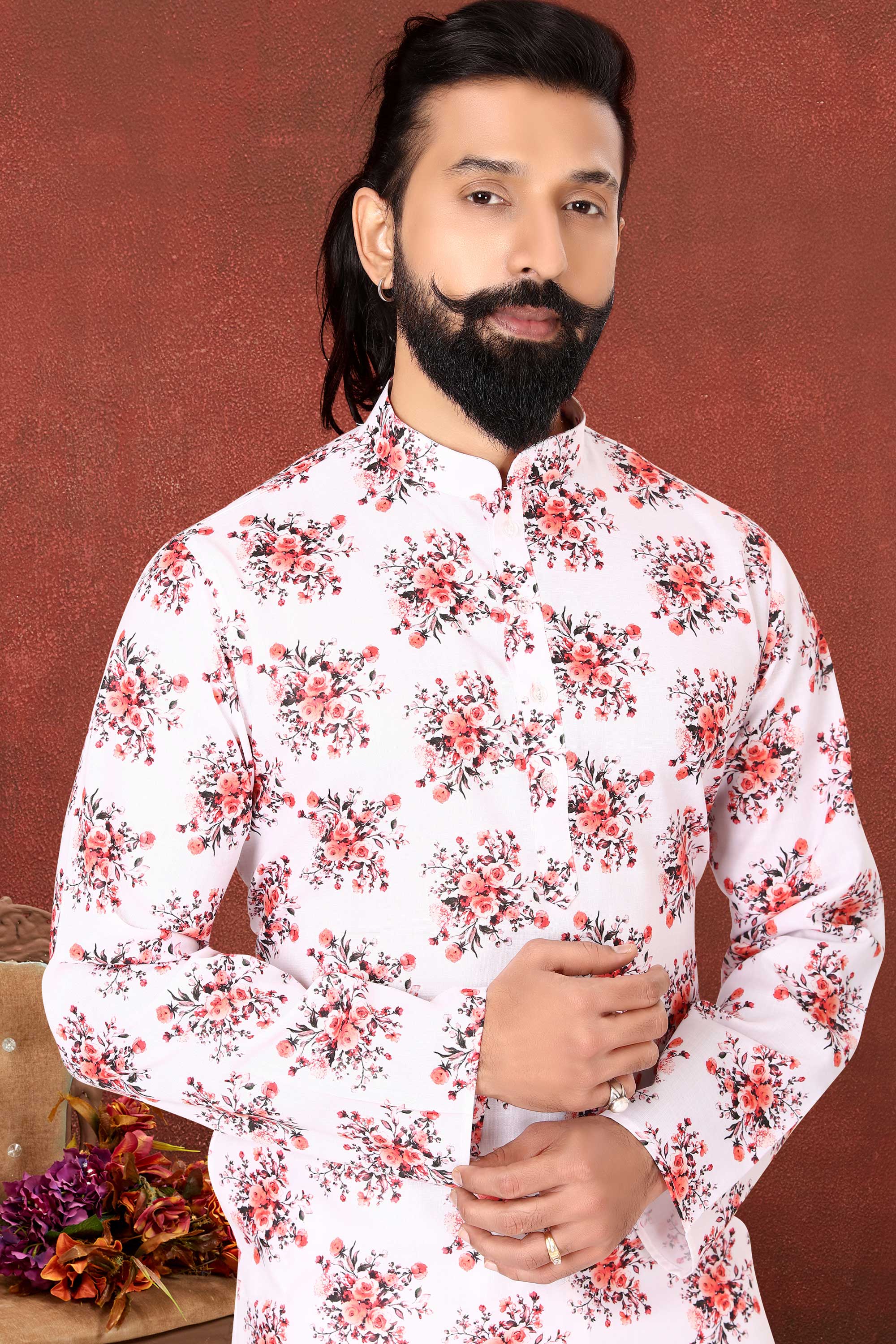 Beautiful Off White Color Wedding Wear Readymade Kurta Pyjama For Men In Cotton Fabric