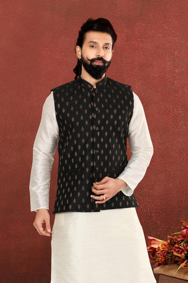 Black Color Gorgeous Cotton Silk Fabric Reception Wear Readymade Men Jacket