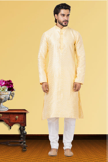 Cream Linen Silk Fabric Function Wear Readymade Kurta Pyjama For Men