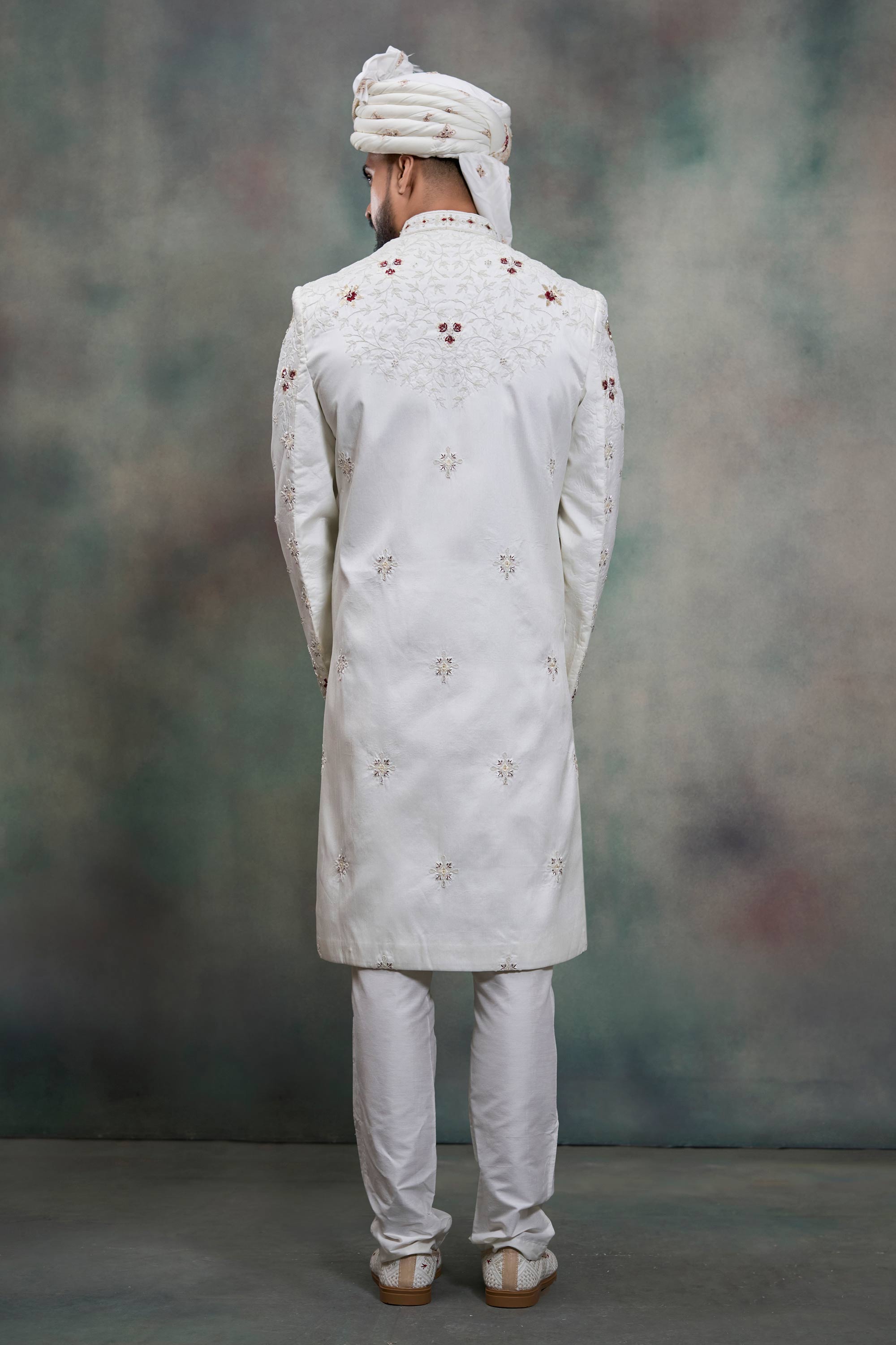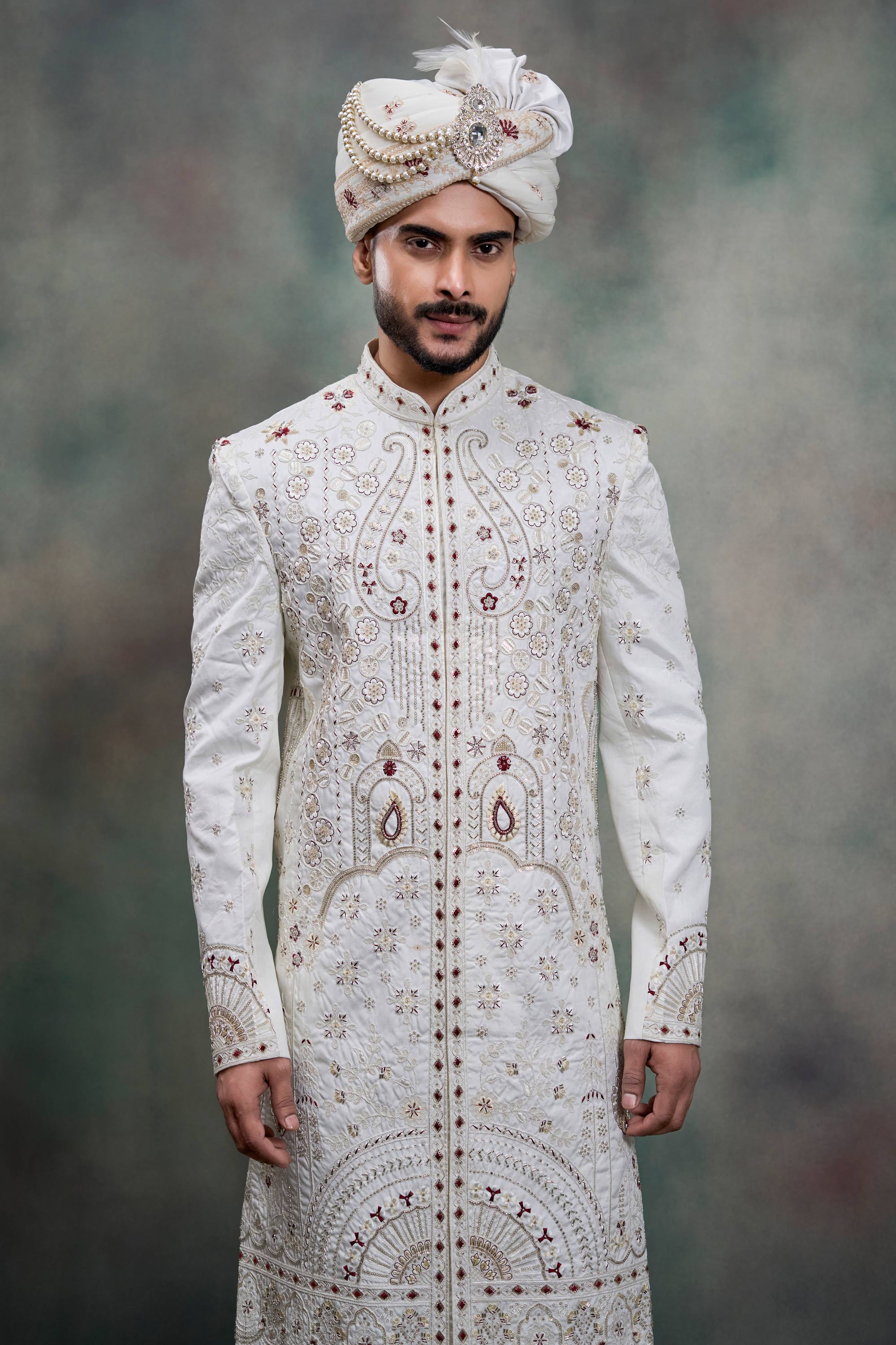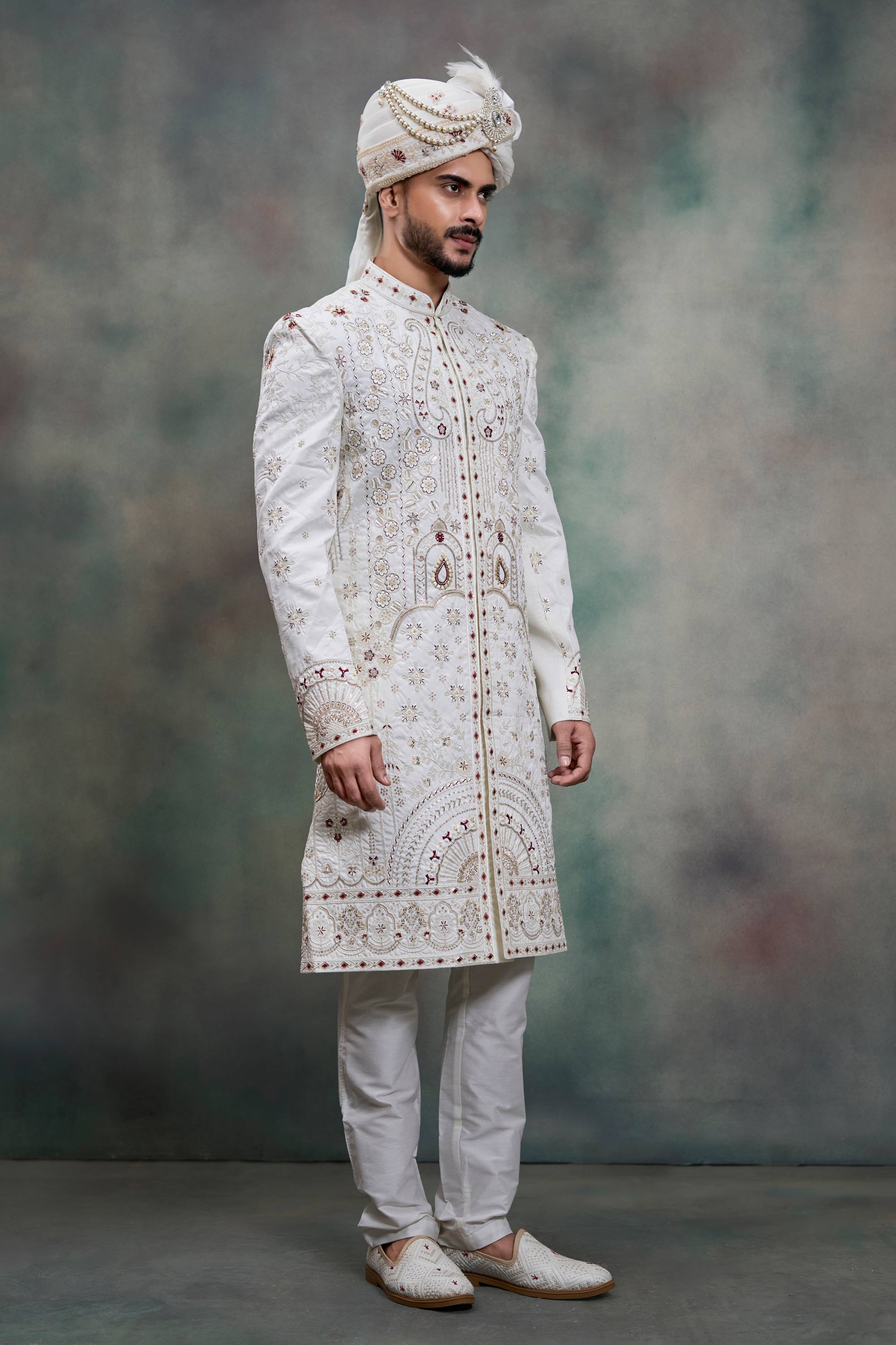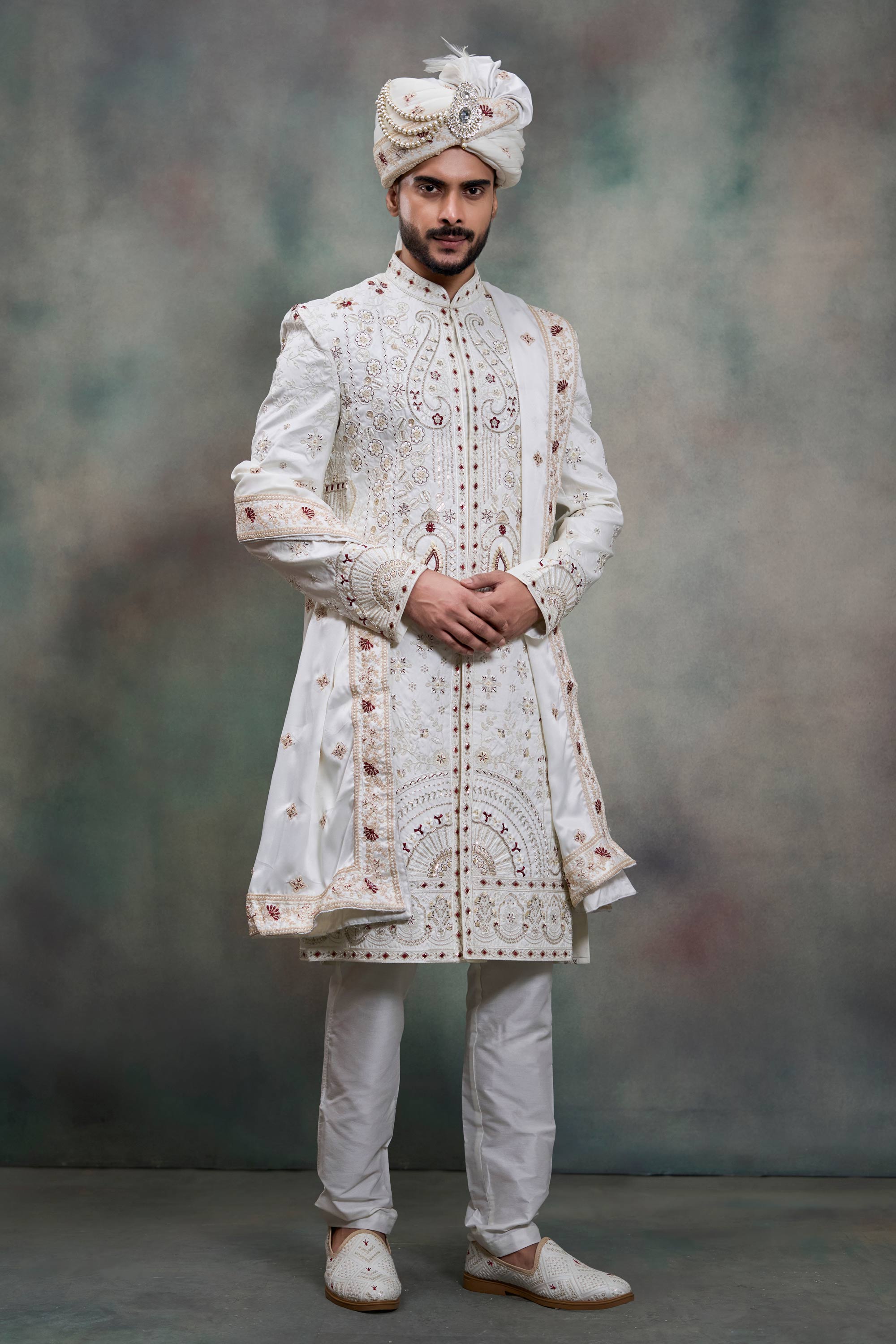 Step into timeless elegance with this Mens Wedding Groom Sherwani, designed to offer a perfect blend of tradition and sophistication. Made from luxurious silk fabric, the sherwani showcases detailed embroidery work that highlights fine craftsmanship and royal aesthetics. Note: Due to digital photography, slight color variations may occur.