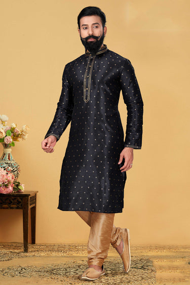 Fancy Fabric Black Color Festive Wear Readymade Men Stylish Kurta Pyjama