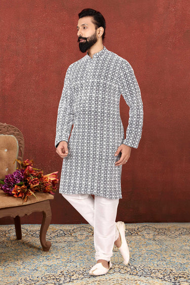 Georgette Fabric Stunning Black Color Function Wear Readymade Men Kurta Pyjama
