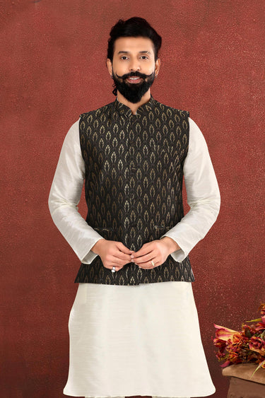 Jacquard Silk Fabric Stunning Black Color Function Wear Readymade Men Jacket