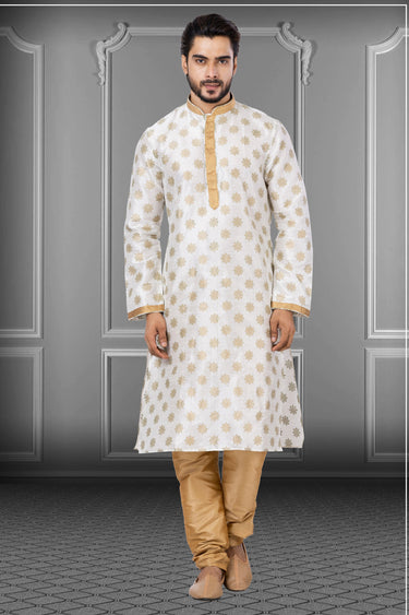 Off White Dhupion Fabric Function Wear Readymade Kurta Pyjama For Men