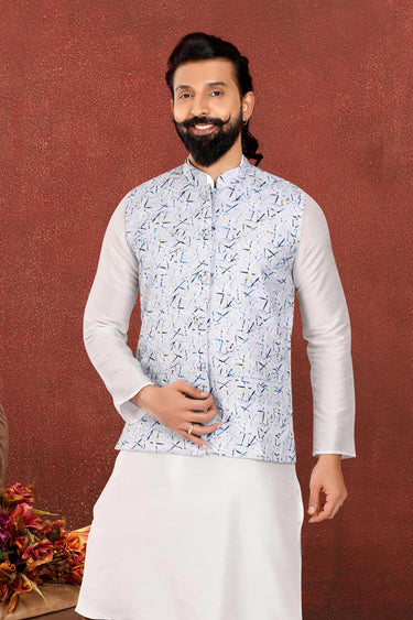 Off White Wedding Wear Readymade Glamorous Jacket For Men In Cotton Fabric