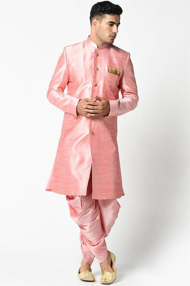 Pink Color Art Silk Fabric Sangeet Wear Trendy Readymade Dhoti Style Indo Western For Men