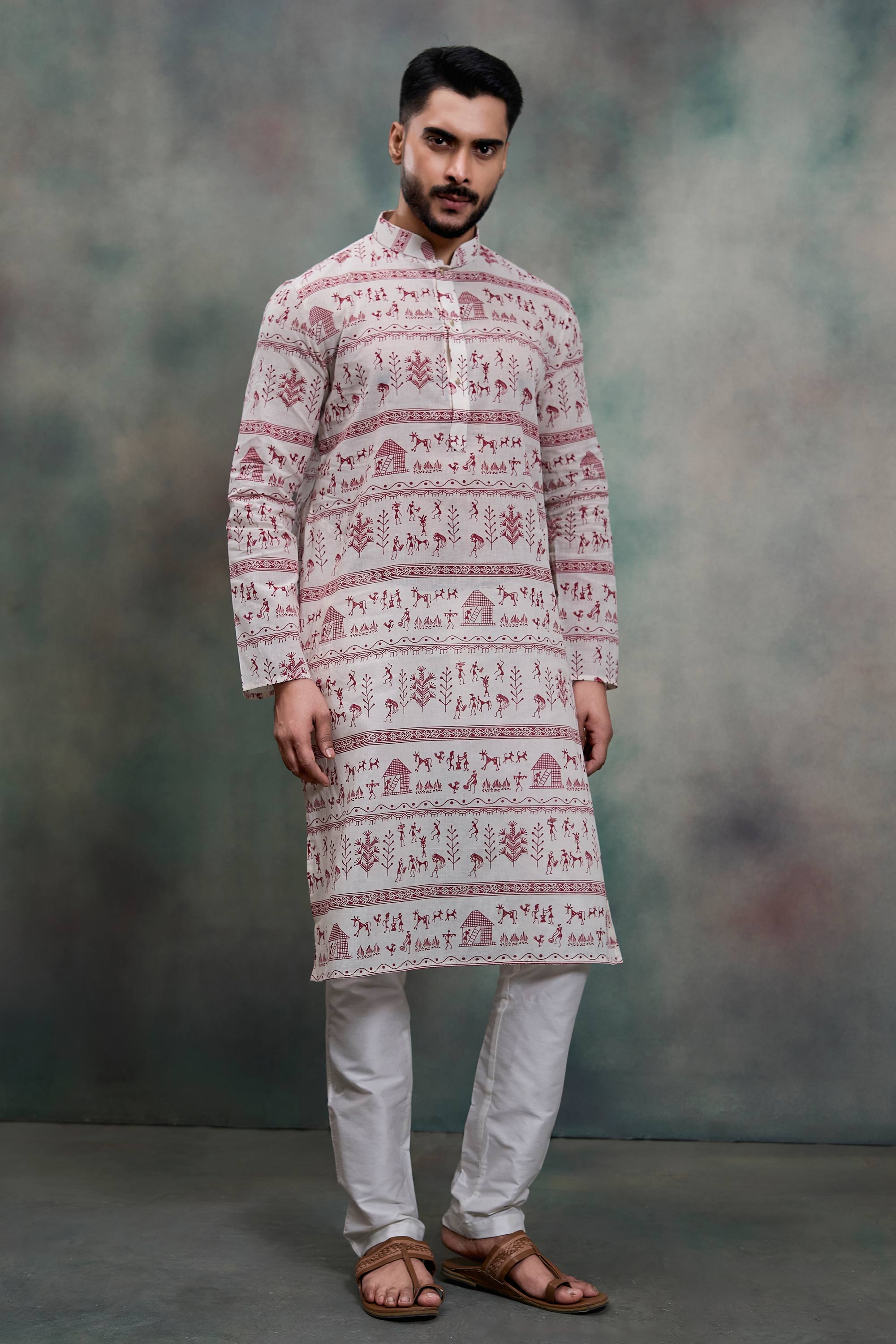 This elegant Kurta Pyjama set is designed for men who prefer a graceful yet comfortable ethnic outfit. The fine printed work on the kurta brings a sophisticated appeal, making it suitable for both daytime events and evening gatherings. Paired with a premium Banarasi Dupion bottom, it ensures a refined festive appearance. Note: Due to digital photography, slight color variations may occur.