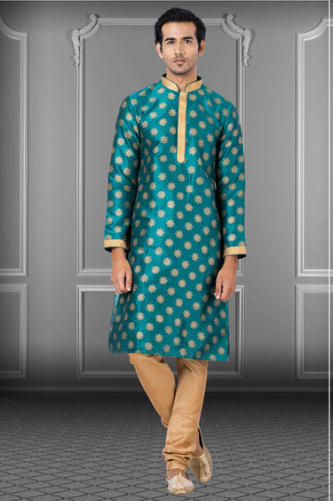 Teal Dhupion Fabric Reception Wear Striking Readymade Kurta Pyjama For Men