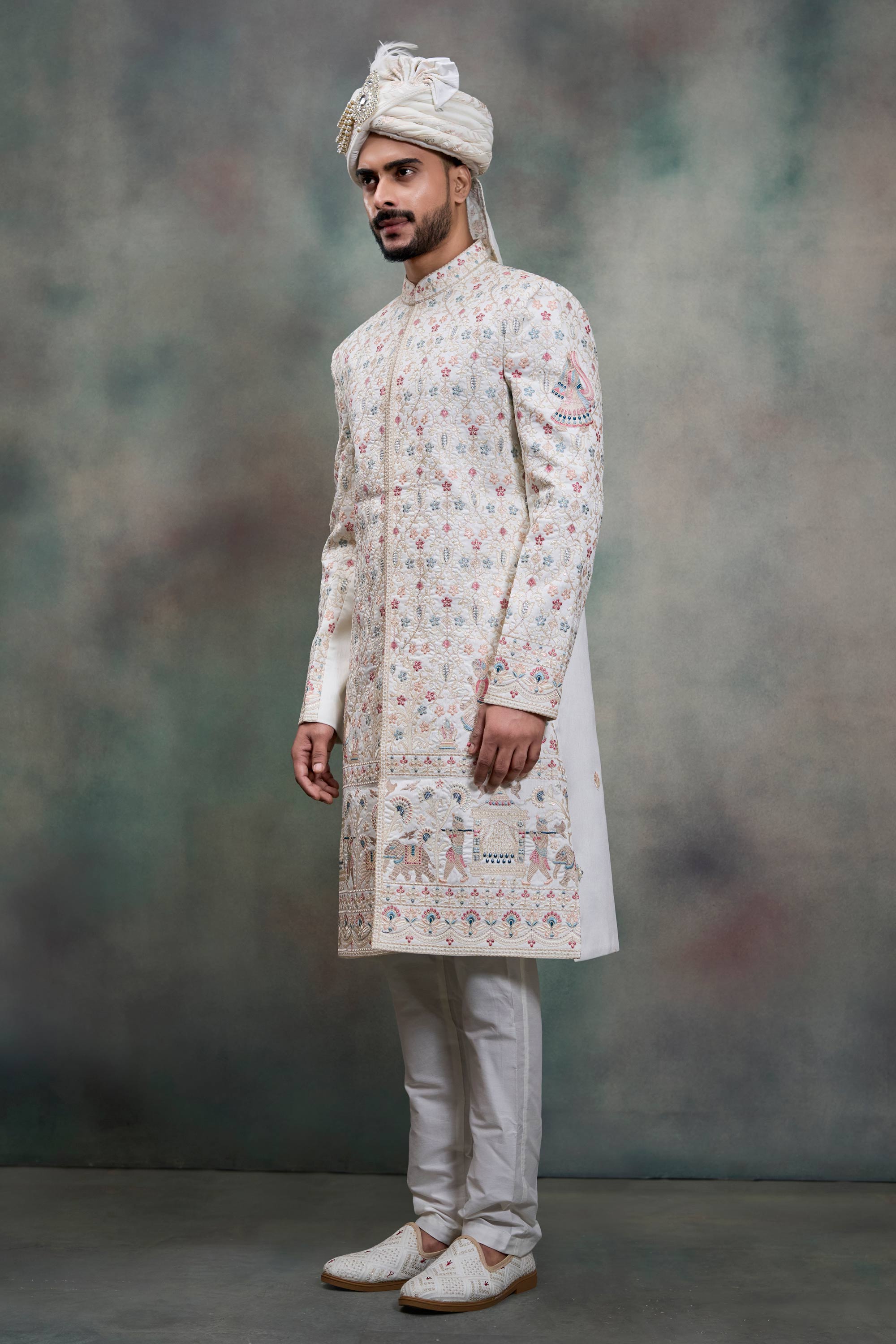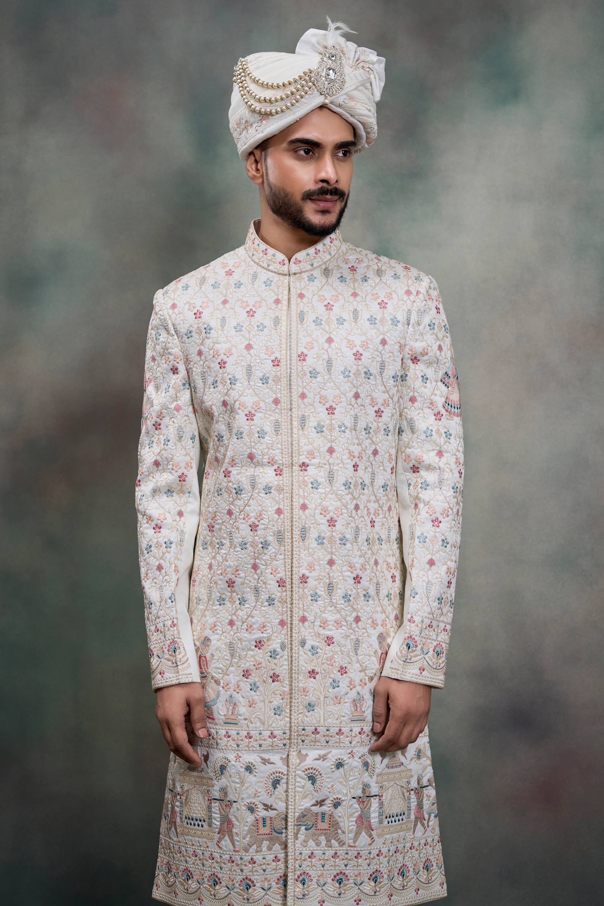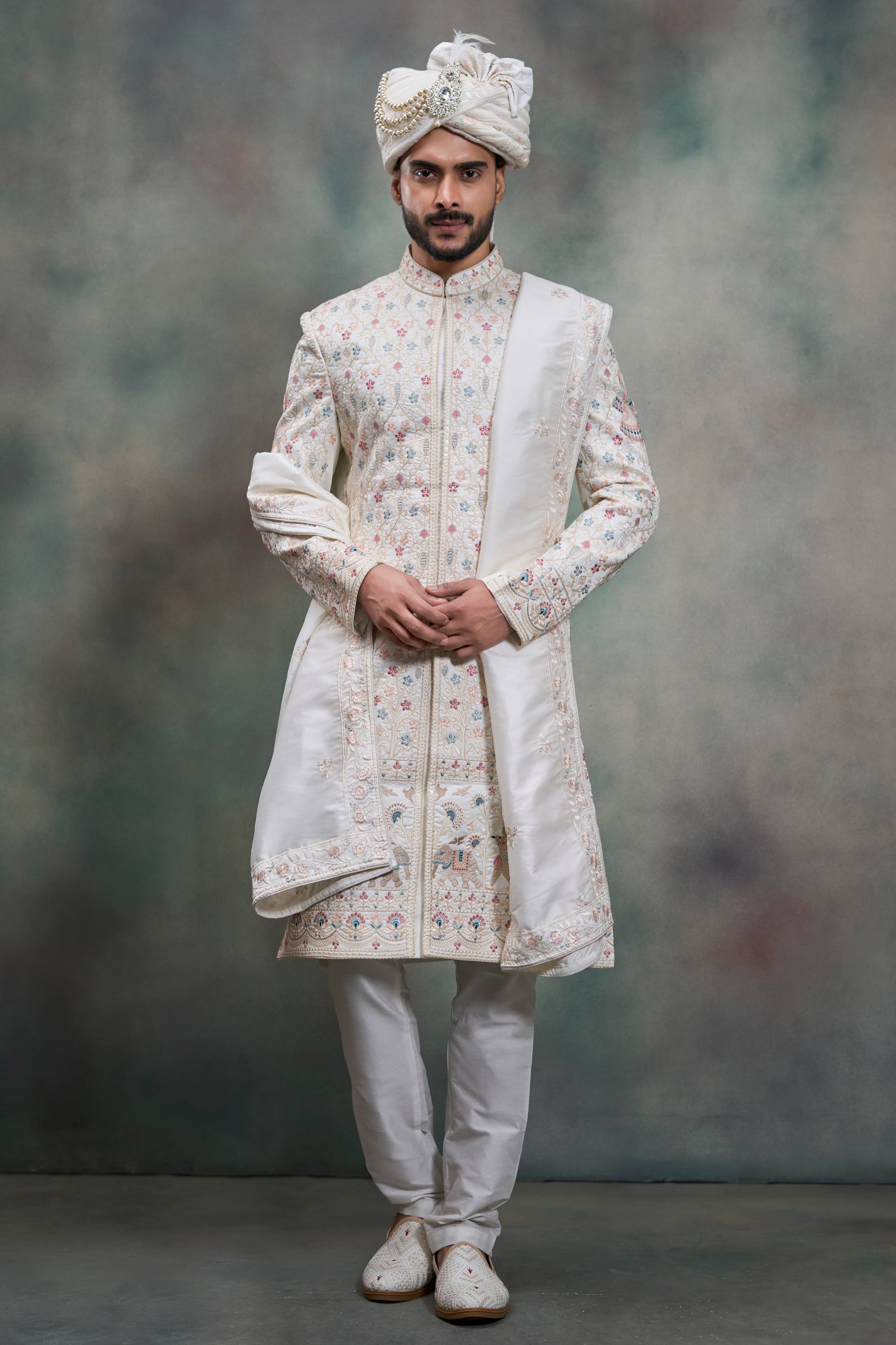 White Silk Fabric Readymade Groom Sherwani For Men