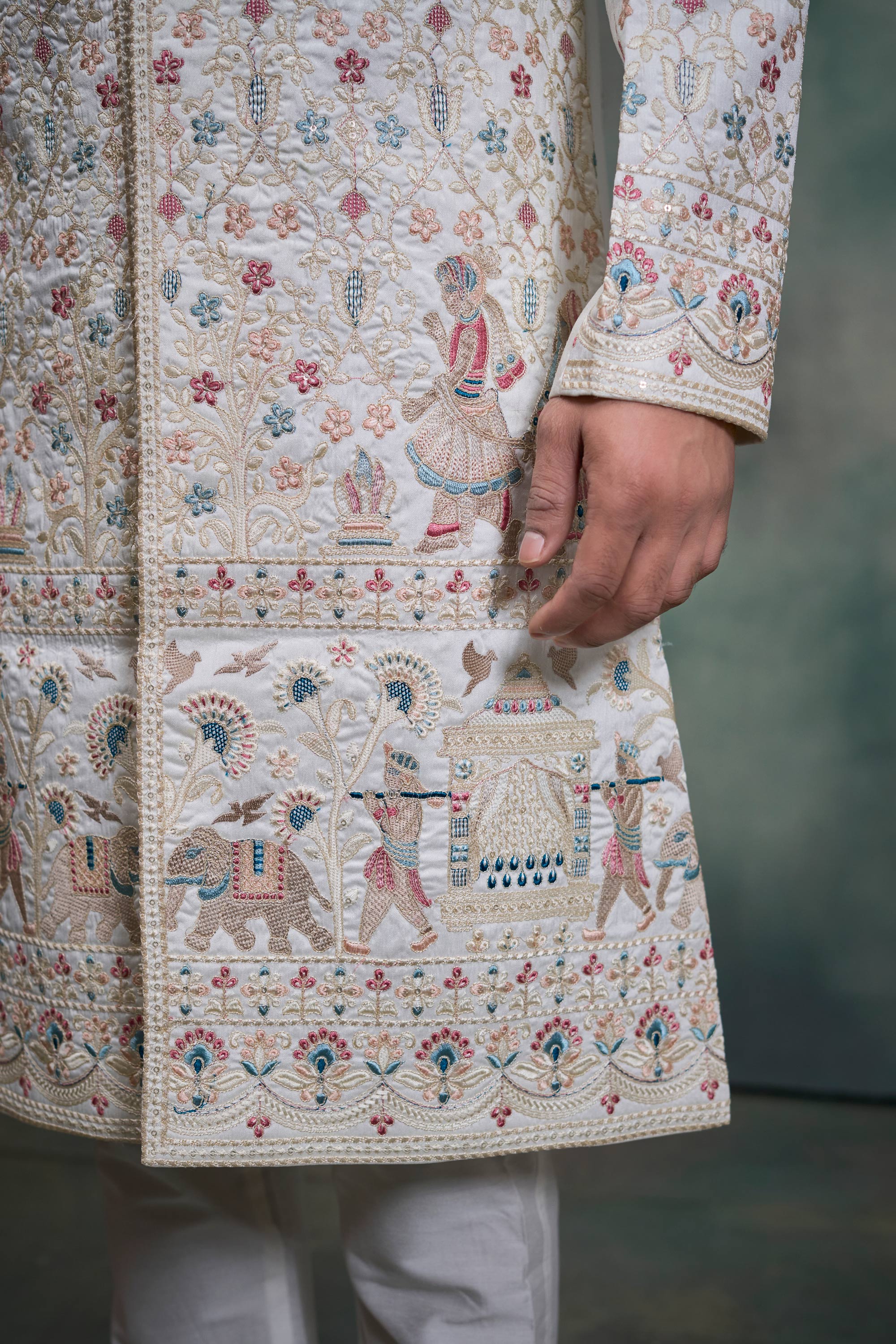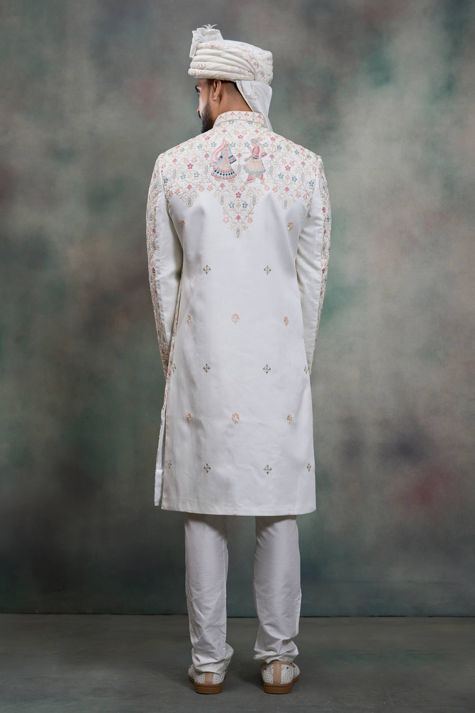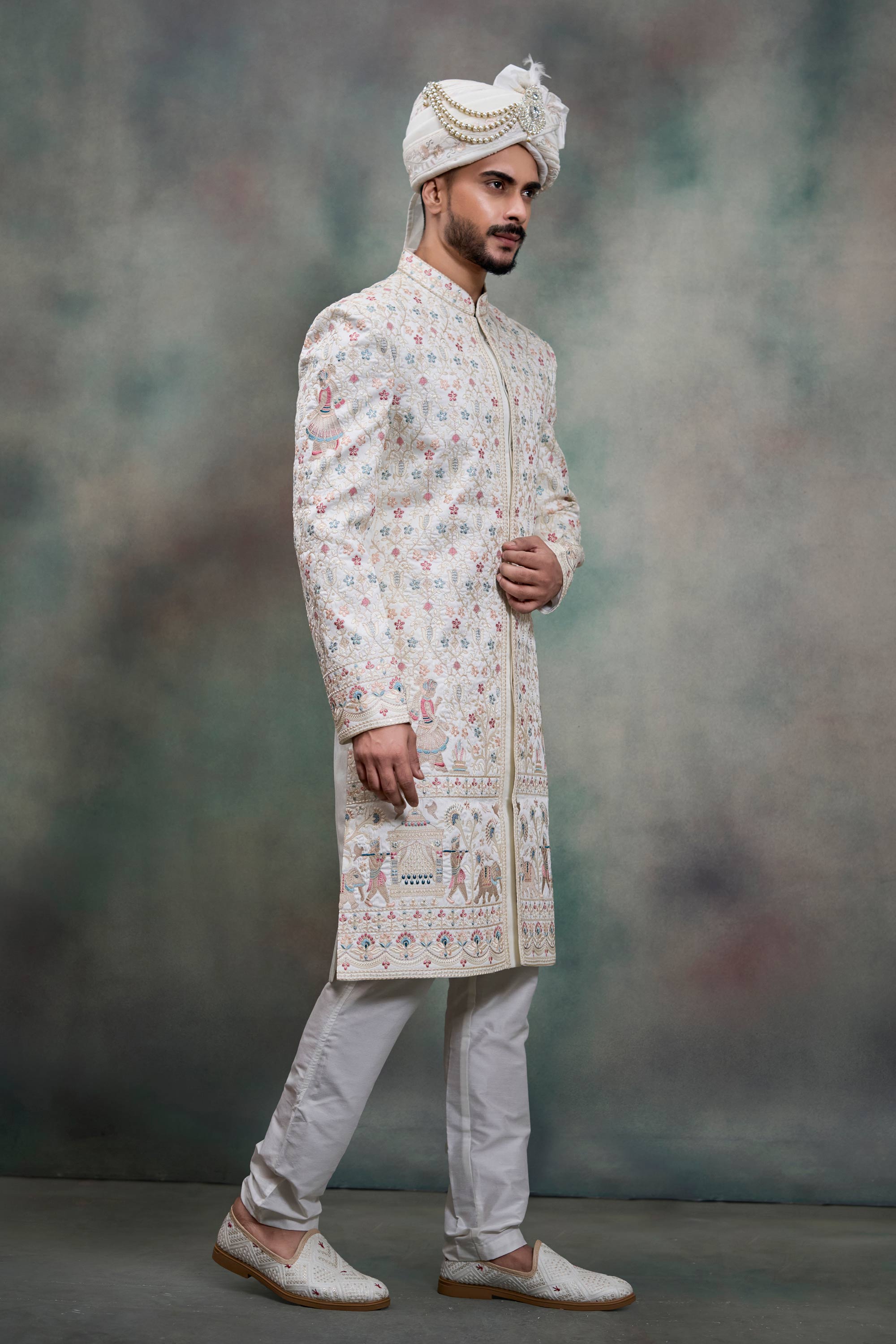 White Silk Fabric Readymade Groom Sherwani For Men